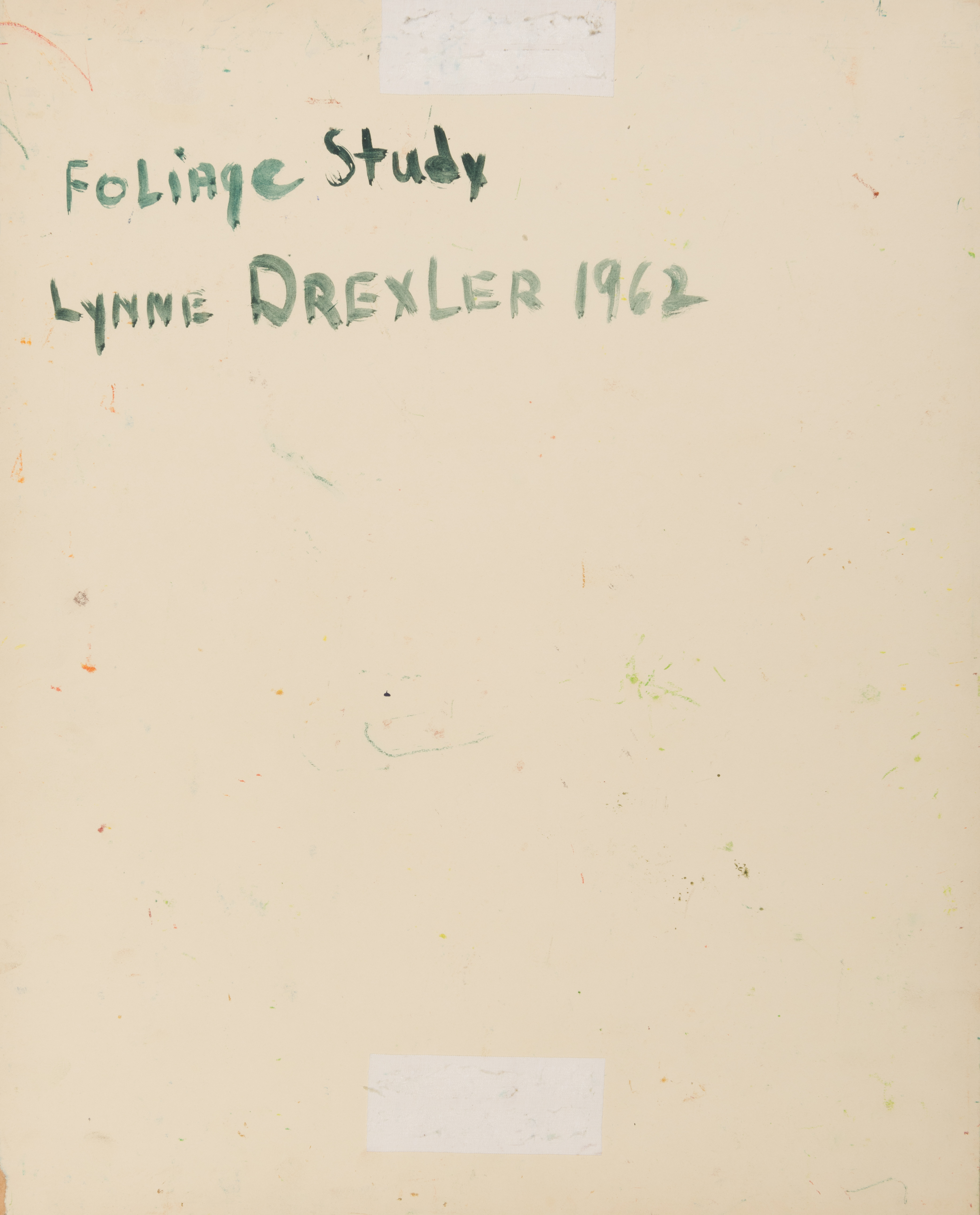 Signed, titled and dated Foliage Study / LYNNE DREXLER 1962 in blue-green ink on the verso.