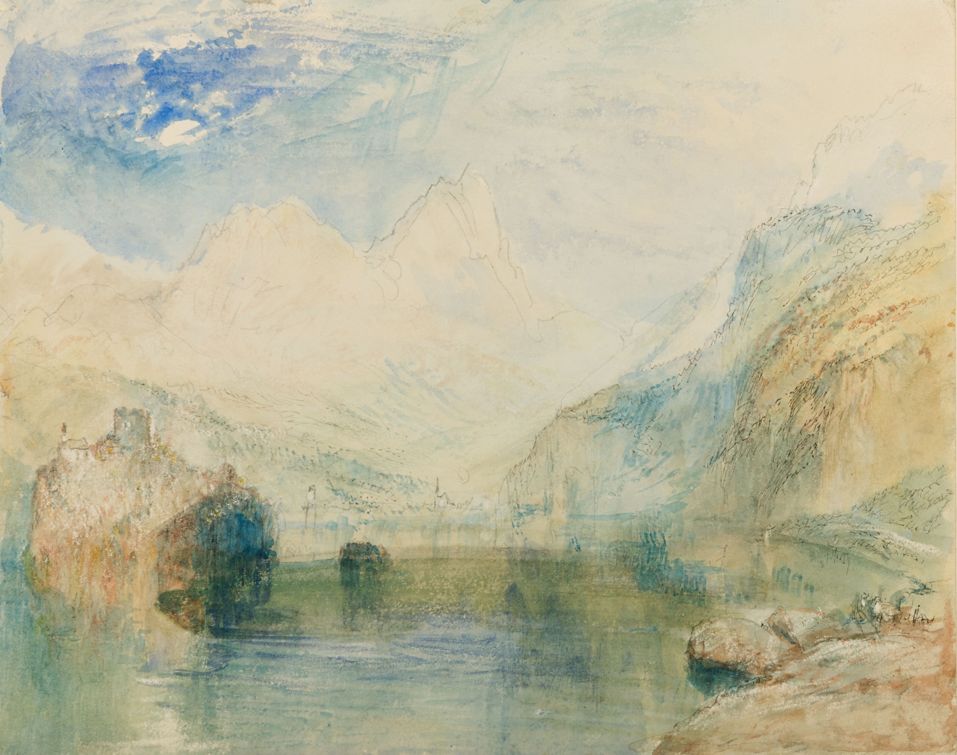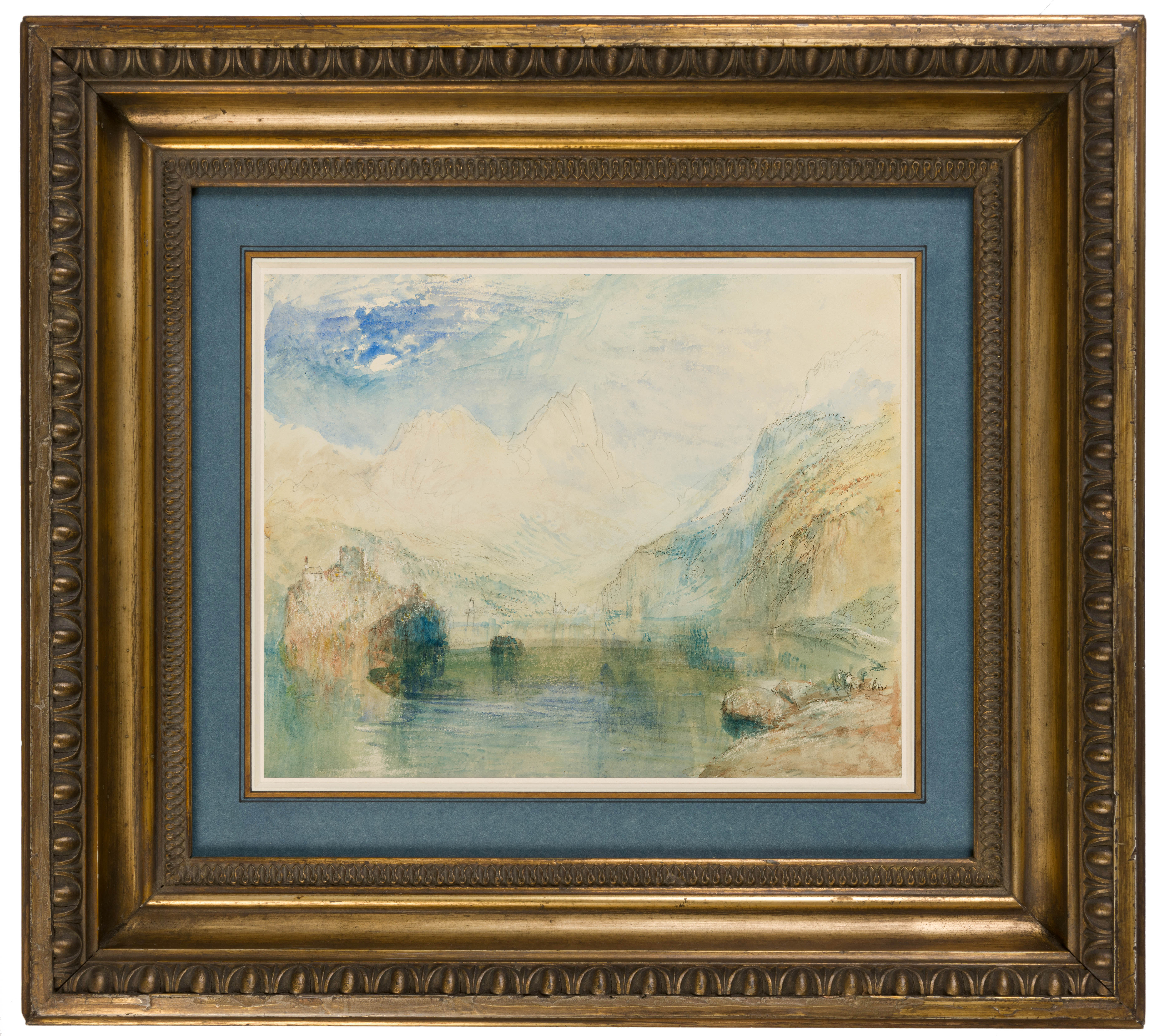 The scholar Andrew Wilton has written that ‘Turner’s fascination with the landscape of Switzerland in the last decade of his career manifested itself almost exclusively in watercolours: studies briefly noted on the spot and worked up in colour afterwards were transformed, under the stimulus of consciously sought commissions, into a sequence of transcendental visions of mountains and lakes defined by the sweeping, swirling spaces between them…He produced hundreds of colour studies on these Swiss journeys, and was bursting with new responses to the lakes and mountains which needed to find expression in the ‘changed’ and ‘hazy’ manner he had newly evolved. But it was hardly in his nature to make finished watercolours without a clear economic purpose like engraving or sale to a collector…He was no doubt conscious that they represented, hazy or not, the culmination of his achievement in the medium…Turner knew these drawings to be his masterpieces.’ Not long after the artist’s death, his late Swiss watercolours began to be highly prized by collectors, and this has continued to the present day.