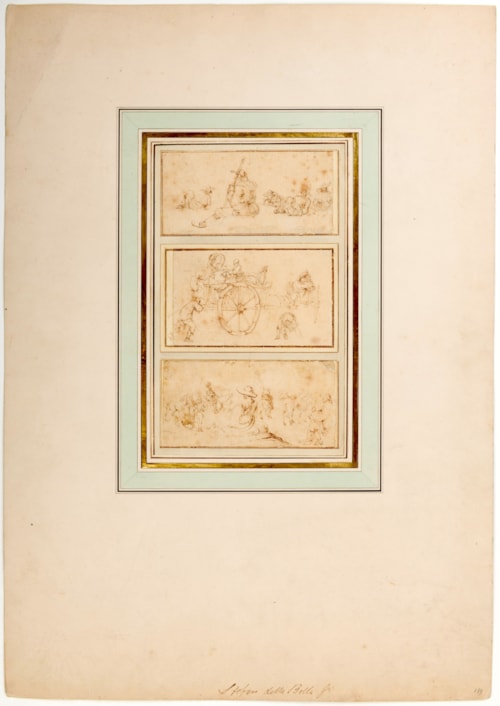 Further inscribed Stefano della Bella fn at the bottom of the album page on which these three drawings were formerly mounted.