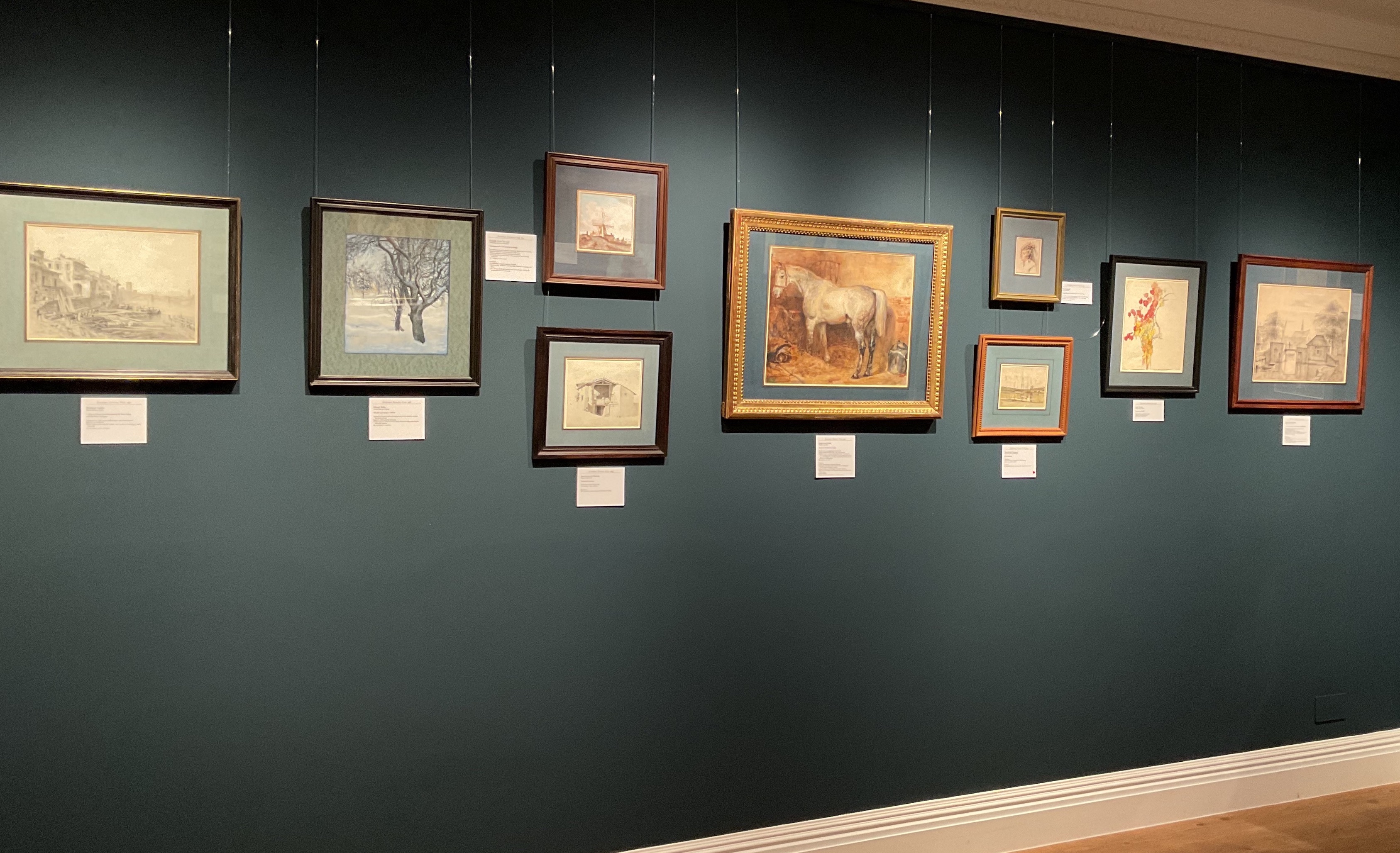 Gouache and black chalk, with framing lines in blue gouache, on paper laid down on board.