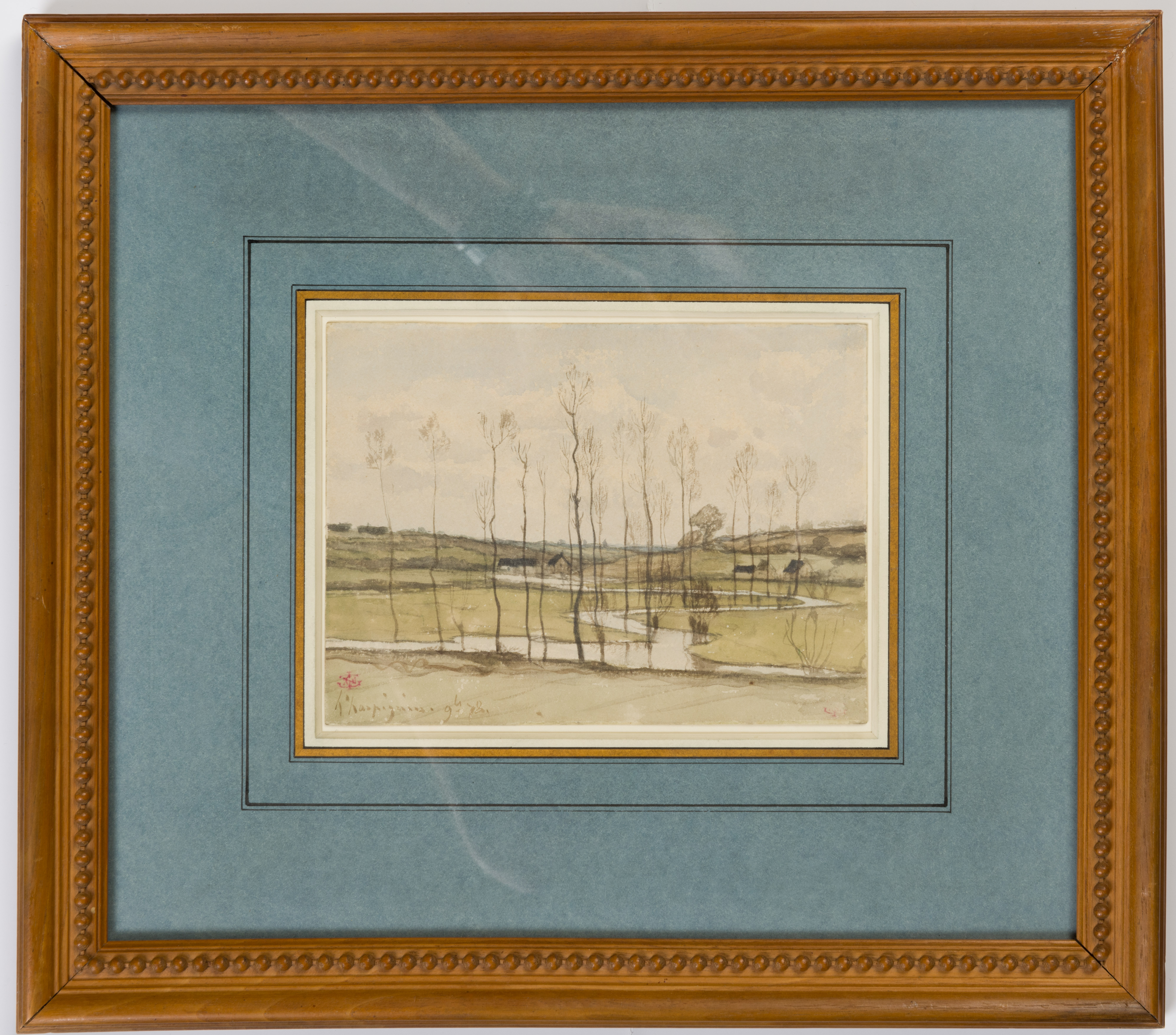 Harpignies developed a particular speciality of landscape drawings in watercolour, a medium he mastered early on. Watercolour drawings accounts for many of the artist’s finest works, and were the basis of his reputation, particularly outside France. (As a contemporary English critic, writing in 1905, noted, ‘one ventures to prophesy that the day will come, if it has not already arrived, when the water-colours of M. Harpignies will be prized even more dearly than his paintings in oils. As an aquarellist M. Harpignies is practically without a living rival in his own country...’). Harpignies exhibited his first watercolour landscapes at the Salon of 1864, where they were praised by the critic Théophile Thoré, and in later years exhibited at both the Société des Aquarellistes Français in Paris and the British Watercolour Society in London. The freshness and luminosity of his watercolours soon gained him a wide audience, and led to his taking on a number of private pupils. Harpignies’ reputation as a watercolourist spread to England, and he was invited by Whistler to exhibit at the Royal Institute in London, From the early 1900’s onwards, he began to substitute charcoal for watercolour, and his drawings take on a silvery-grey tonality that is perhaps indicative of his failing eyesight. Nevertheless, Harpignies maintained an emphasis on a distinctive manner of tonal landscape, inspired by Corot, in the paintings and drawings that he produced well into the early years of the 20th century.