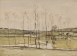 Harpignies developed a particular speciality of landscape drawings in watercolour, a medium he mastered early on. Watercolour drawings accounts for many of the artist’s finest works, and were the basis of his reputation, particularly outside France. (As a contemporary English critic, writing in 1905, noted, ‘one ventures to prophesy that the day will come, if it has not already arrived, when the water-colours of M. Harpignies will be prized even more dearly than his paintings in oils. As an aquarellist M. Harpignies is practically without a living rival in his own country...’). Harpignies exhibited his first watercolour landscapes at the Salon of 1864, where they were praised by the critic Théophile Thoré, and in later years exhibited at both the Société des Aquarellistes Français in Paris and the British Watercolour Society in London. The freshness and luminosity of his watercolours soon gained him a wide audience, and led to his taking on a number of private pupils. Harpignies’ reputation as a watercolourist spread to England, and he was invited by Whistler to exhibit at the Royal Institute in London, From the early 1900’s onwards, he began to substitute charcoal for watercolour, and his drawings take on a silvery-grey tonality that is perhaps indicative of his failing eyesight. Nevertheless, Harpignies maintained an emphasis on a distinctive manner of tonal landscape, inspired by Corot, in the paintings and drawings that he produced well into the early years of the 20th century.