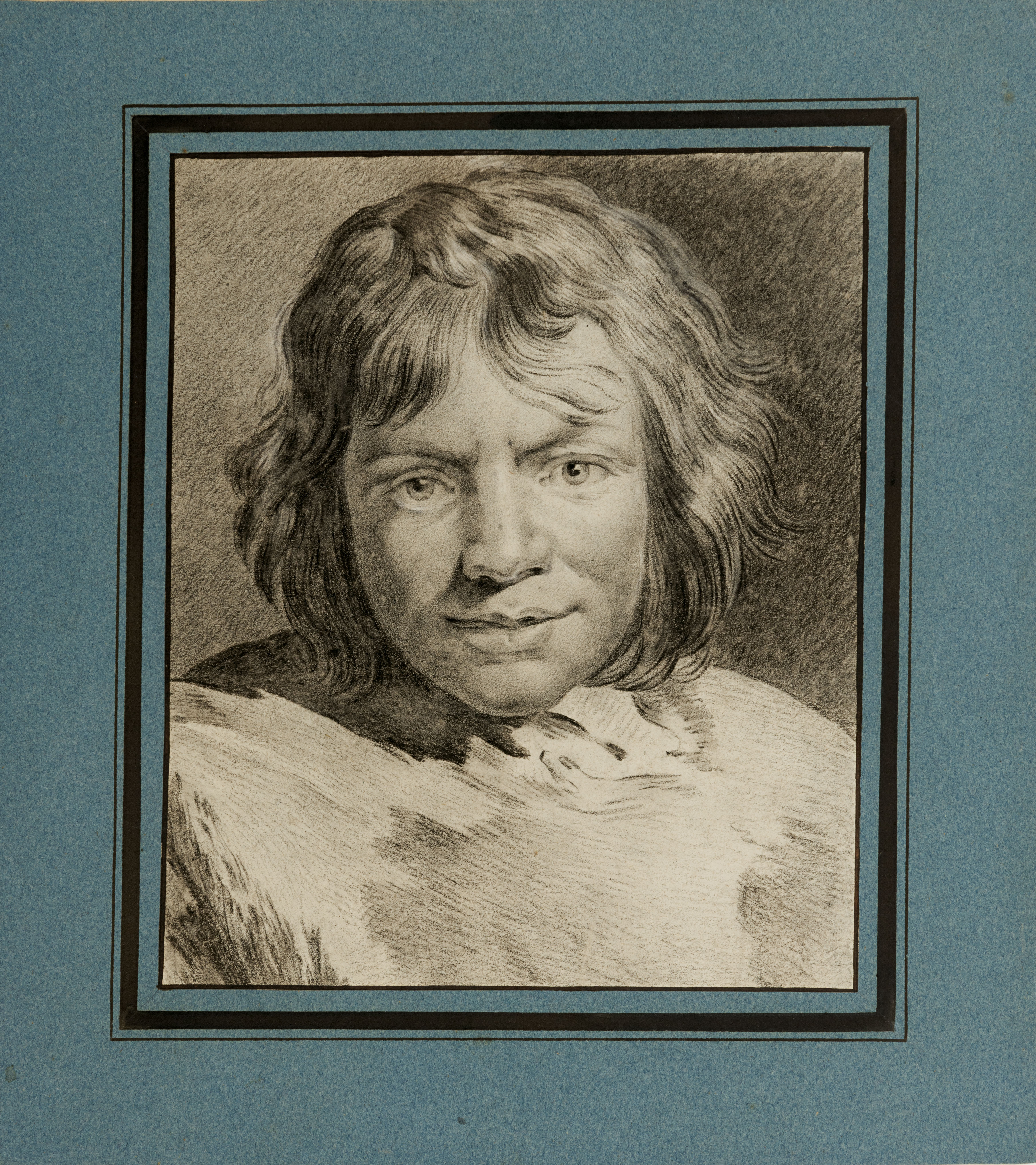 A copy after part of a print, entitled La Folie and datable to c.1737, by the 18th century French engraver Pierre Aveline (1702-1760) after Cornelis Visscher (1628-1658), of which two impressions are in the British Museum. The print depicts a youth holding a cap with a feather and bells in one hand and a mask behind his back in the other. The print is captioned ‘Combien de Curieux empressé à me voir / Pouront, en me voyant, se passer de miroir?’.