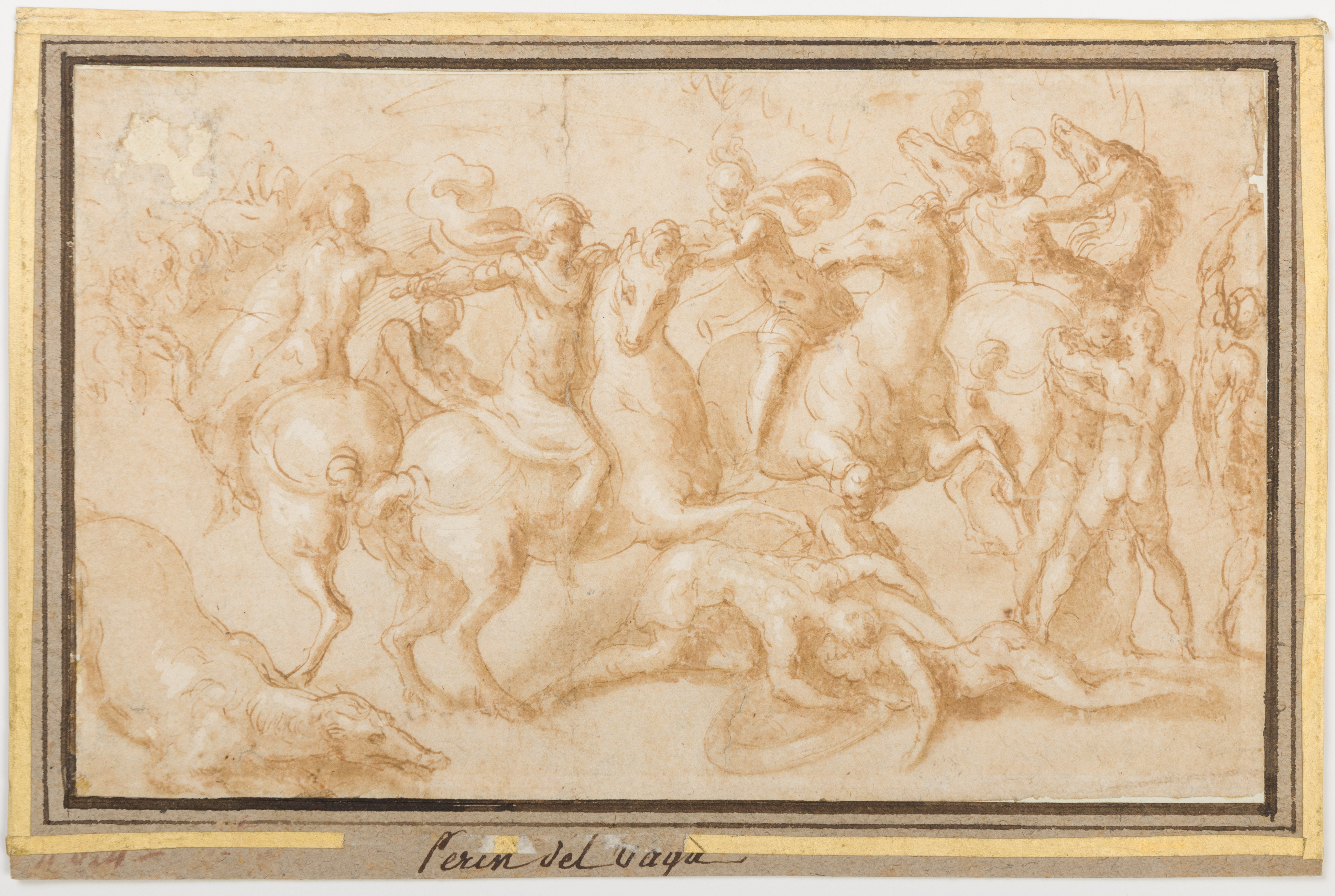 Laid down on an old (18th century?) mount, inscribed Perin del vaga at the bottom.