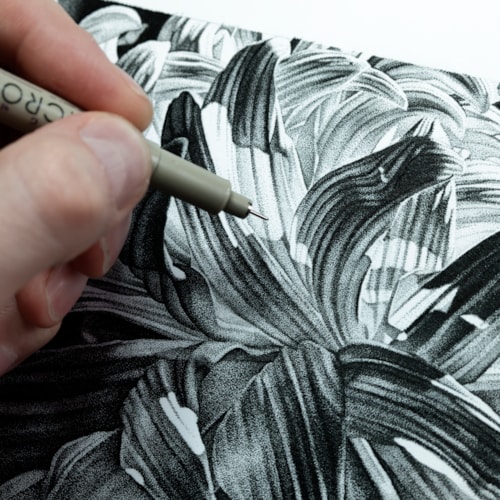 Louis Savage’s signature technique involves using pen on paper to create intricate artworks through stippling, a process in which an image is made up of very fine dots applied over many tens or hundreds of hours.