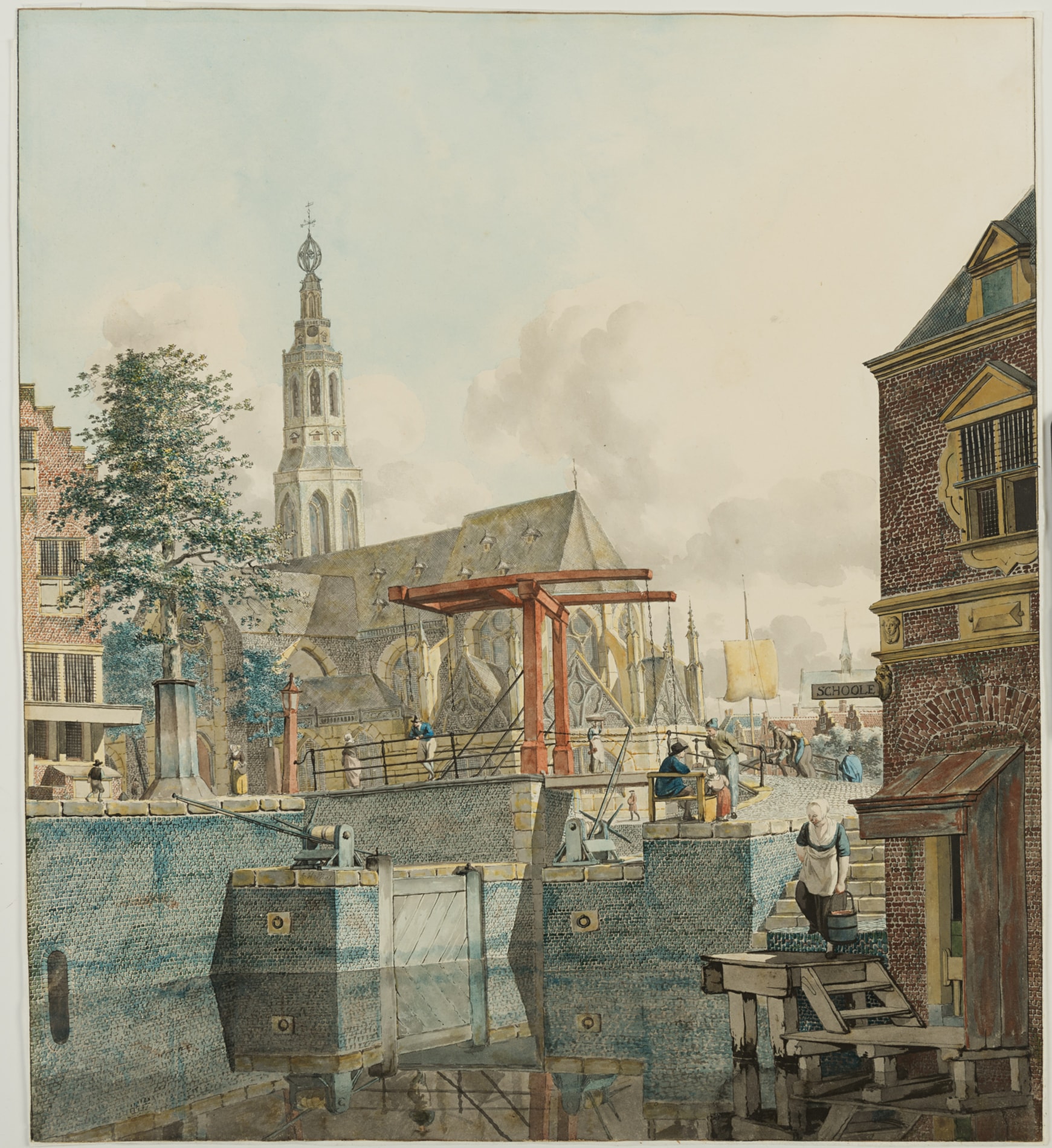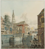 The precise locations depicted in Prins’s drawings and watercolours of Dutch townscapes are often difficult to determine, and many may have been imaginary views.