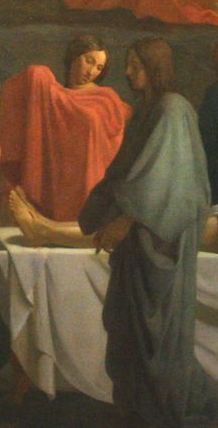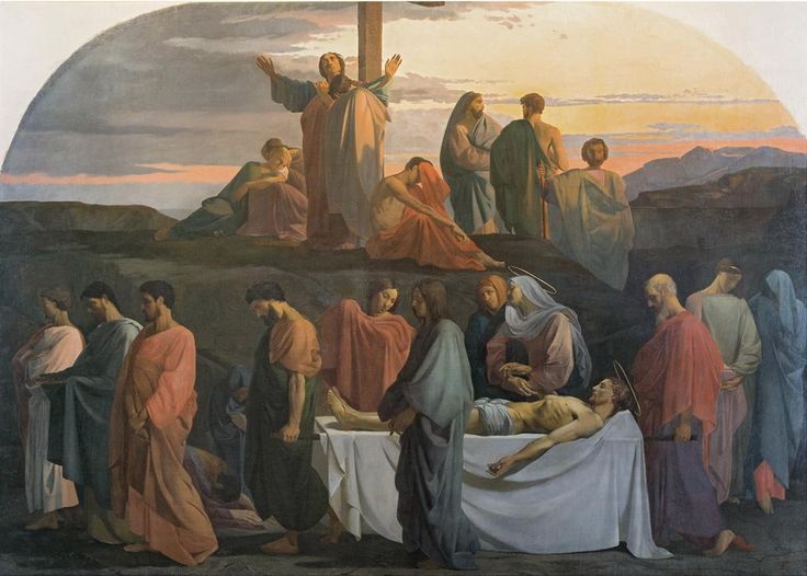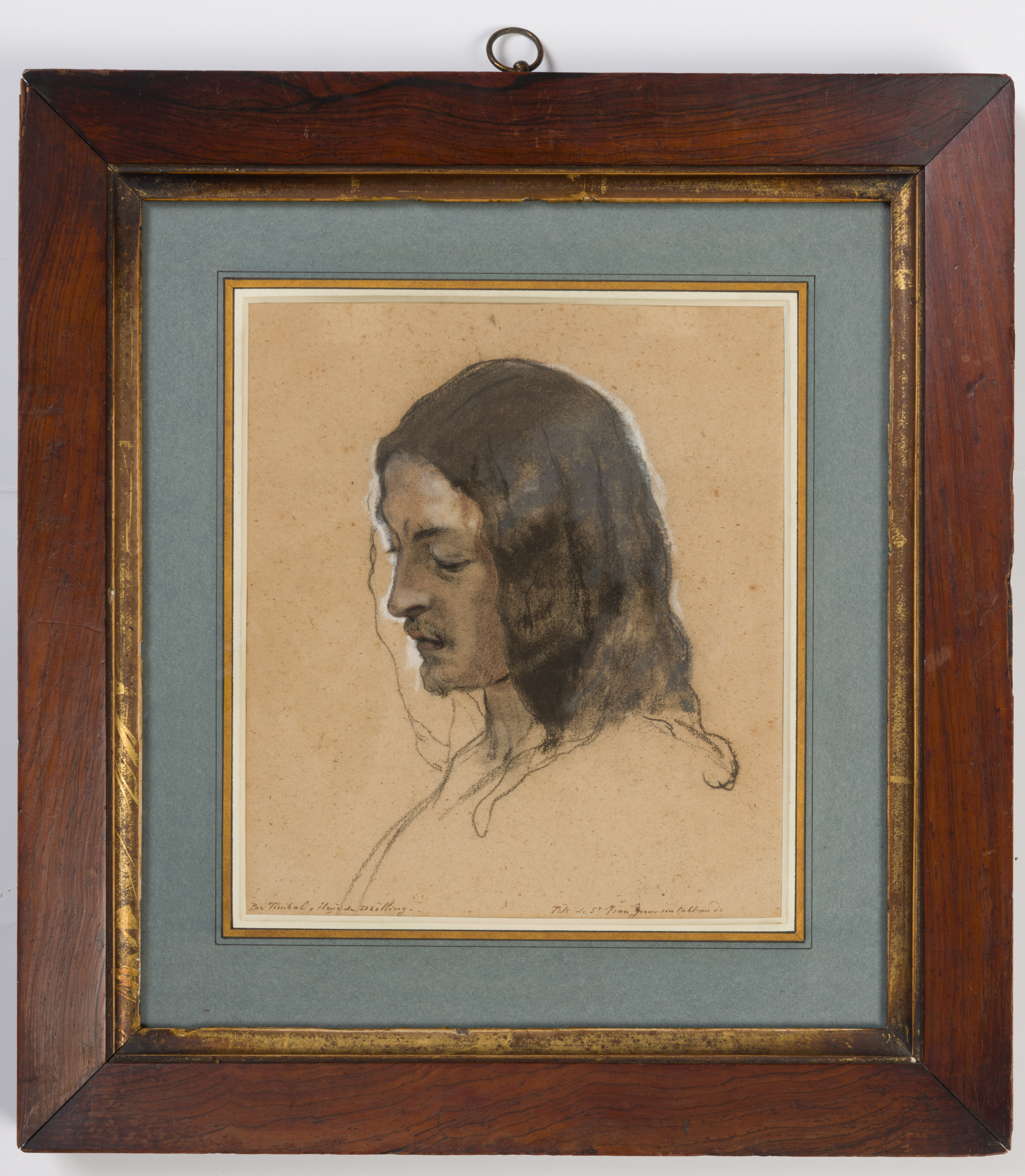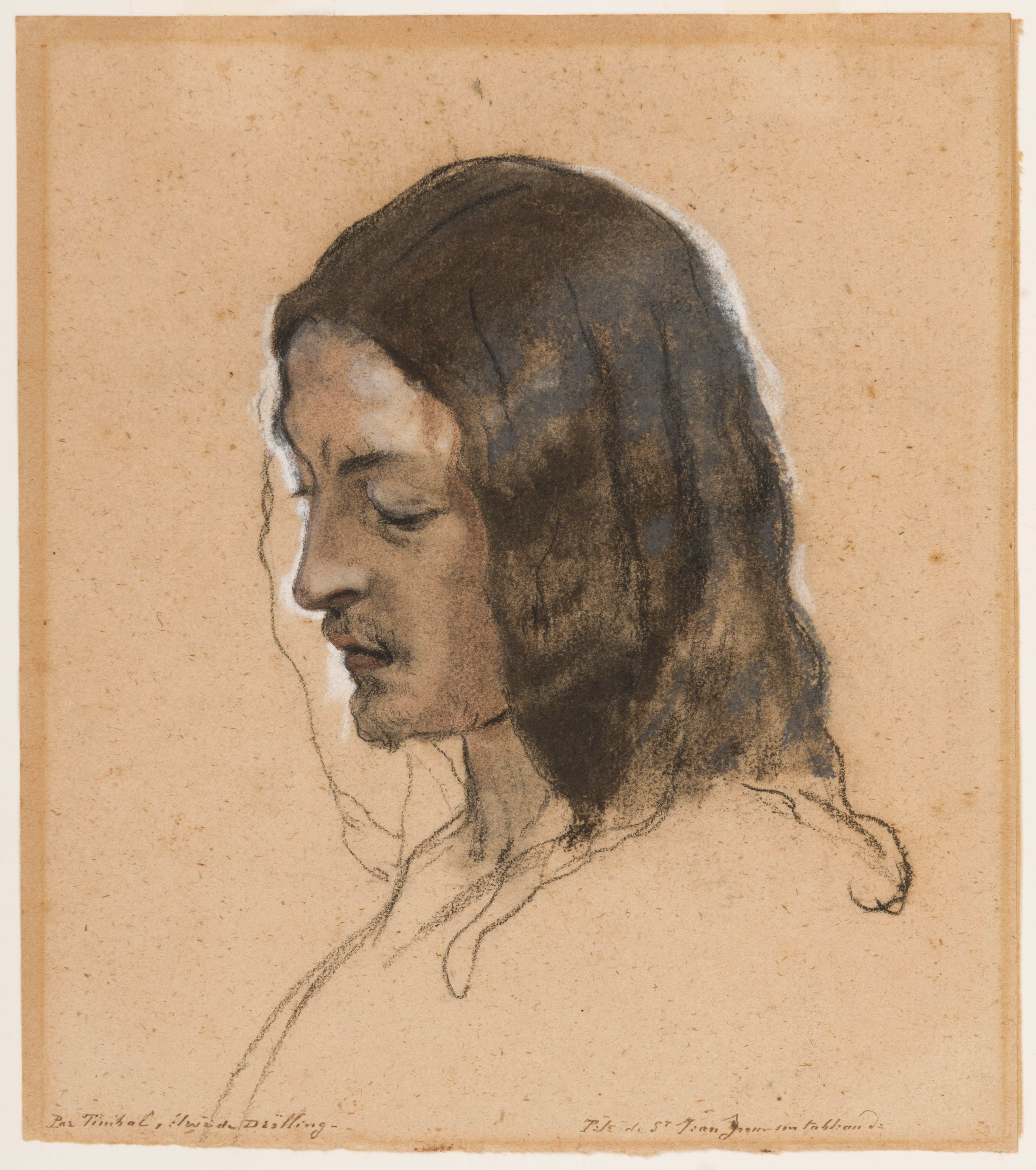 The present sheet appears to be a study for the head of a young saint (John?) in the foreground of Timbal’s monumental painting of The Burial of Christ, painted in 1848 and today in the Musée Barrois in Bar-le-Duc.