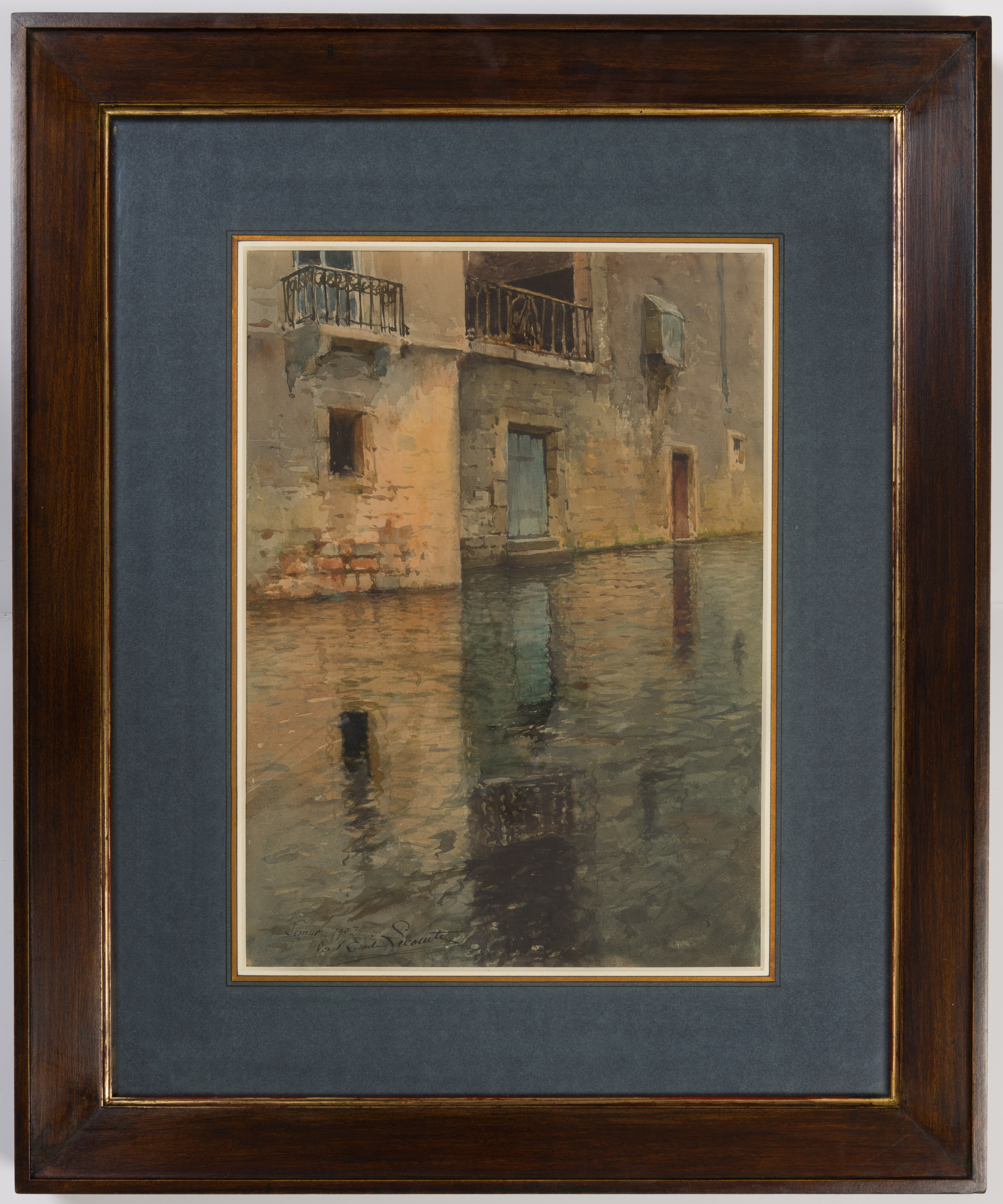 The son of the landscape painter and watercolourist Paul Lecomte (1842-1920), Paul Emile Lecomte was initially trained by his father before completing his artistic education in the studio of Fernand Cormon at the École des Beaux-Arts in Paris. To this formal training was added the influence of the Impressionists, particularly evident in terms of his painterly technique. Lecomte made his debut at the Salon des Artistes Français in 1902 with a painting of Mont-Saint-Michel seen from Avranches, and he continued to exhibit there in later years, winning a silver medal in 1920 and a gold medal in 1922. Lecomte was a prolific painter, and much of his oeuvre was made up of river and coastal landscapes, port and harbour scenes and market subjects, in both France and Spain. He also produced several views of Venice. In 1928 a book of Lecomte’s watercolour views of Paris was published in three volumes, while two years later an exhibition of his sketchbook drawings and watercolours was held at the Galerie Charpentier in Paris.