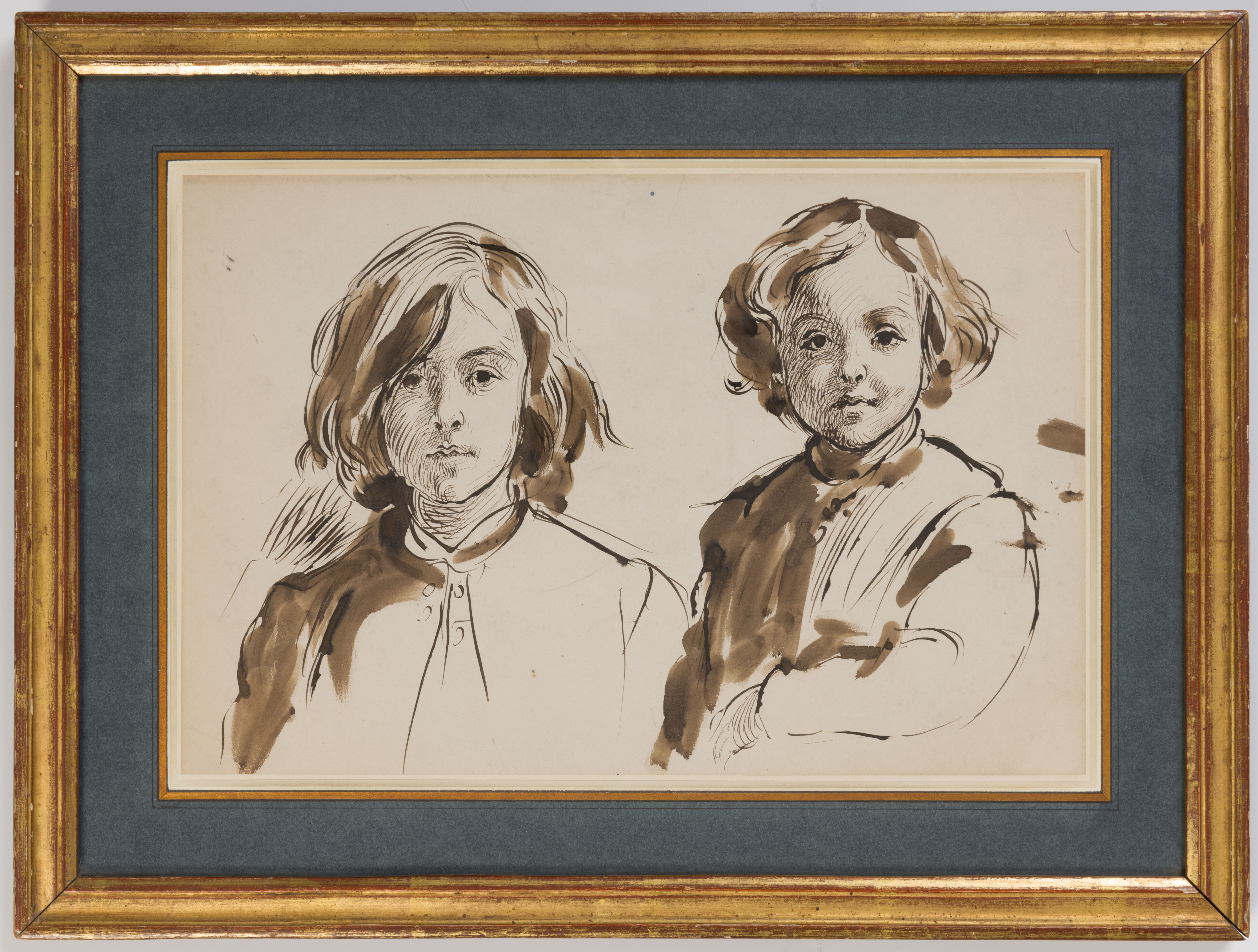 Alfred Dehodencq married Maria Amelia Calderon in Cadiz in 1857, and they had five children, three of whom died young. The artist, who delighted in depicting children in his genre paintings, produced a number of charming paintings and drawings of his own children. As his close friend and biographer Gabriel Séailles recalled, ‘He loved his children passionately, with a jealous, almost tyrannical affection; he couldn't let them out of his sight; he always wanted them close to him; he drew and painted them incessantly; there wasn't a child whose portrait he didn't paint more than ten times.’ Among other studies of his children by Dehodencq are a depiction of his son Edmond in the act of drawing, a study of three of the Dehodencq children also engaged in drawing, and a pastel portrait of his daughter Marie - all of which were in the collection of the painter’s son Alfred in 1910 – as well as a sketch of The Family of the Artist which once belonged to Gabriel Séailles. A watercolour portrait sketch of Edmond Dehodencq was with Stephen Ongpin Fine Art in 2019 and is now in a private American collection, while a small pastel portrait of Edmond reading appeared at auction in 2019. The culmination of Dehodencq’s depictions of his family is found in the finished painting Interior (The Children of the Artist) of 1872.