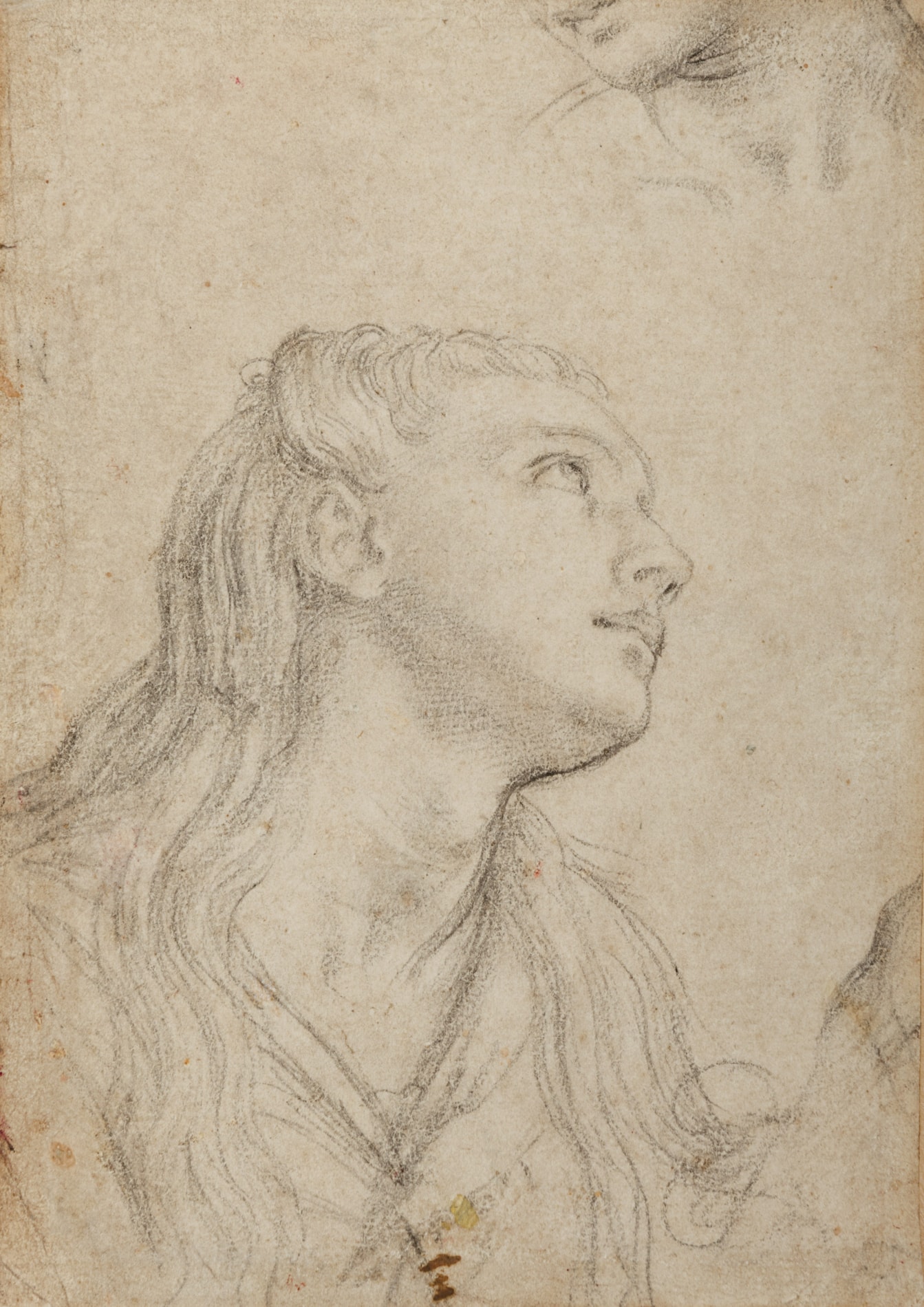The Head of a Young Woman Looking Upwards, with a Partial Study of a Head Above