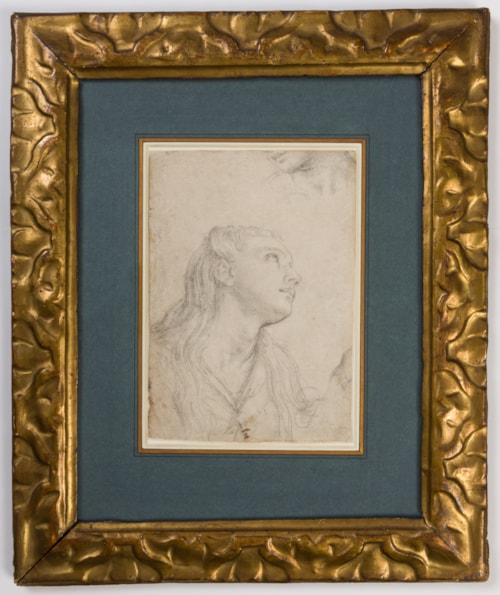 As one scholar has noted of a stylistically similar late drawing of a female saint by Allori, likewise drawn from a live model, ‘the complexion and profile of the face [do not] show any of the stiff, formal abstraction typical of Bronzino, which one finds in so many drawings from Allori’s youth; rather, they bear witness to a poetic attentiveness on the artist’s part to the more internalized aspects of reality and of the model drawn from life. This indeed was the most novel and personal aspect attained by Allori in his mature work.’ Among comparable drawings by Allori is a recently identified study of the head of the Virgin in the Museo Nazionale di Capodimonte in Naples, while similar female heads also appear in a number ofseveral drawings by the artist in the Uffizi, including a sheet of studies of heads, arms and hands and a study of the head of a woman, both drawn in black chalk.