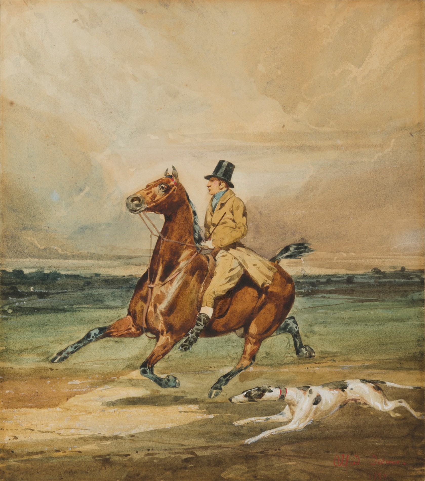A splendid, fresh example of Alfred De Dreux’s watercolour technique, the present sheet is unrelated to any surviving oil painting by the artist, and is likely to have been produced as a finished work of art for a collector.
