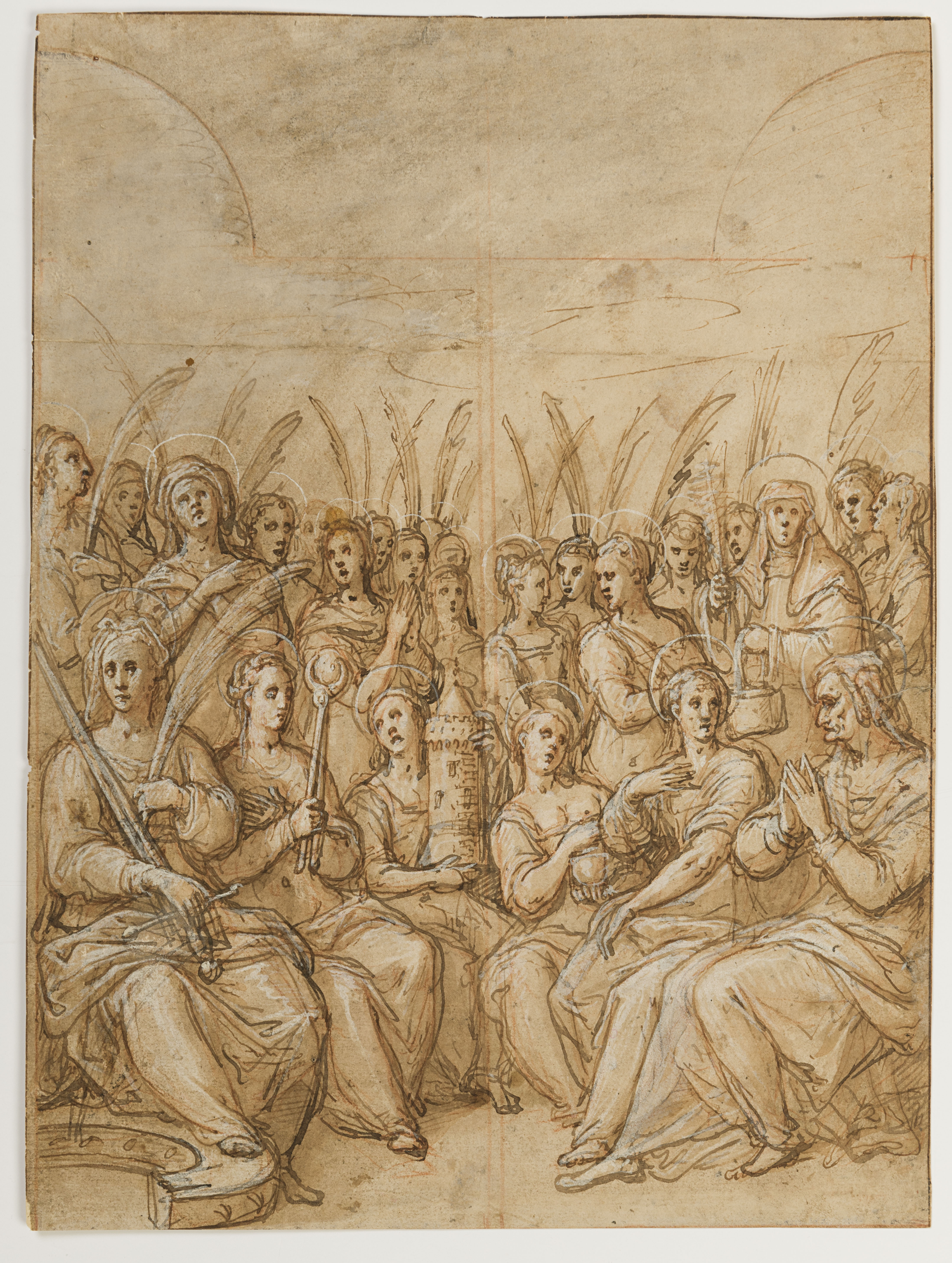 Design for the Outer Wings of an Altarpiece, with a Group of Virgin Martyrs and Other Female Saints
