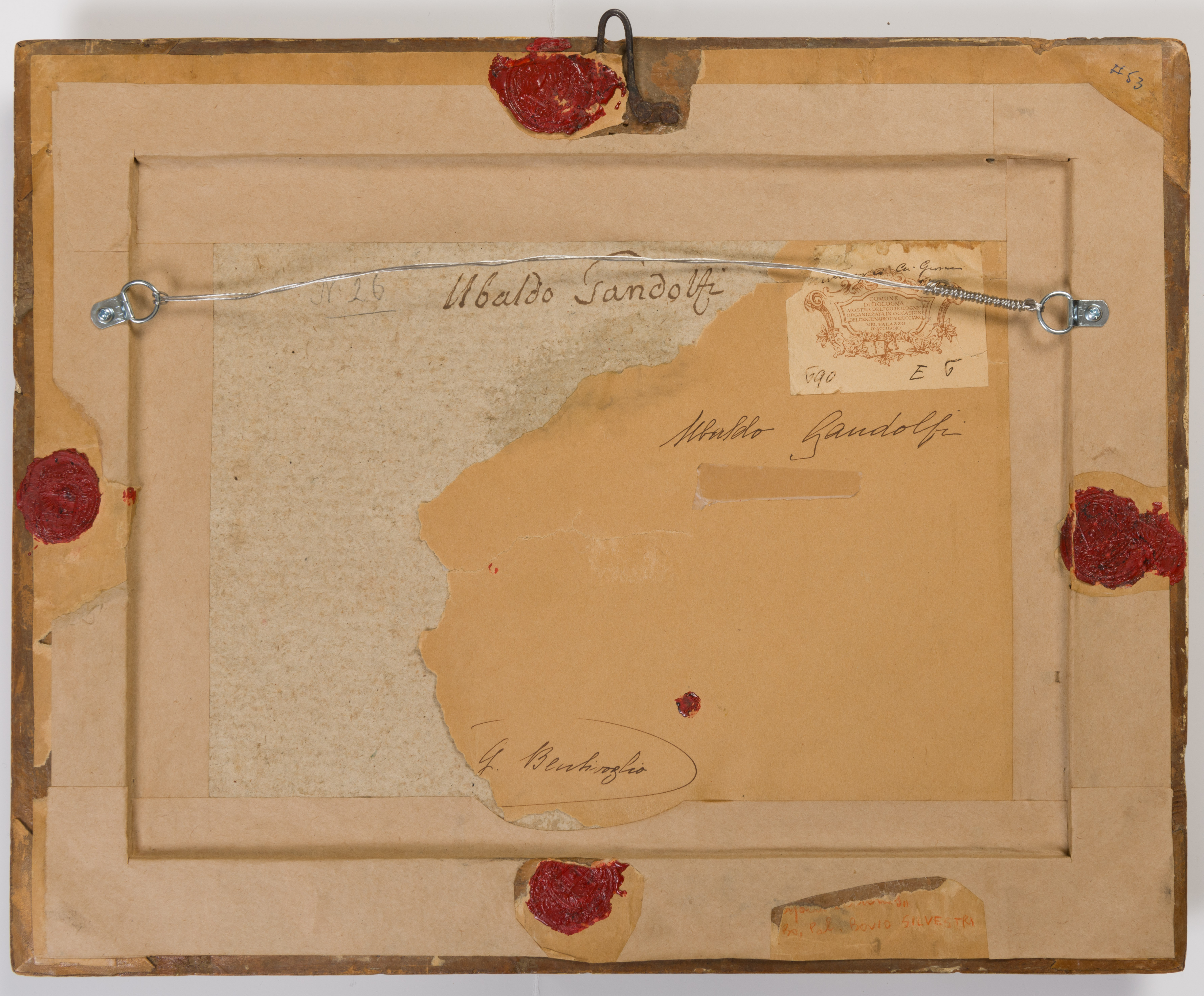 Inscribed Ubaldo Gandolfi and G. Bentivoglio on the backing paper of the original frame.