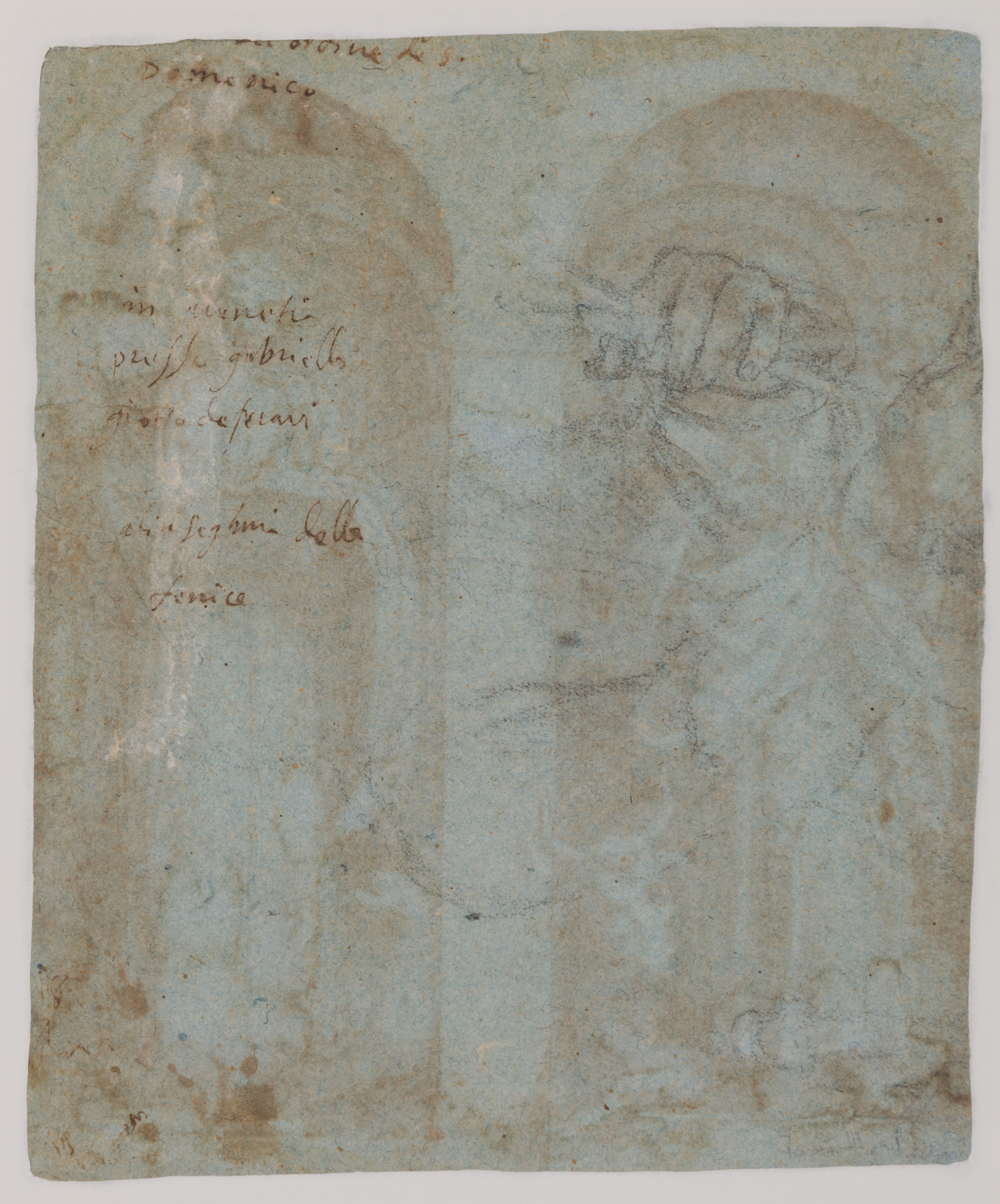 The possibility that Trometta worked in Venice is suggested by the inscription on the verso of this drawing of Saints Luke and John, which may record the circumstances of a now-lost, or never executed, commission.