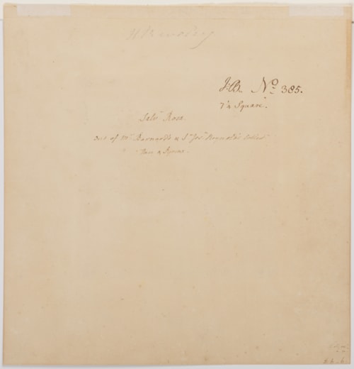 Further inscribed (by Barnard) J:B. No 385. / 7 1/4 Square. and (by Reveley) Salv: Rosa / out of Mr. Barnard’s & Sr. Jos.aReynold’s Collectn / Pan & Syrinx. on the reverse of the mount.