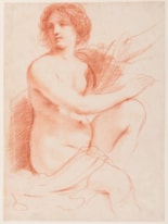 Although Turner published the present sheet as a study for the figure of Venus in Guercino’s painting of The Toilet of Venus of c.1622-1623, painted during the artist’s Roman period and today in the Goethe Academy in Renaissance, California, this drawing is likely to date from somewhat later in the artist’s career, around the second half of the 1630s. A stylistic comparison may be made with a red chalk drawing of Cleopatra, of the same period, in the British Museum.