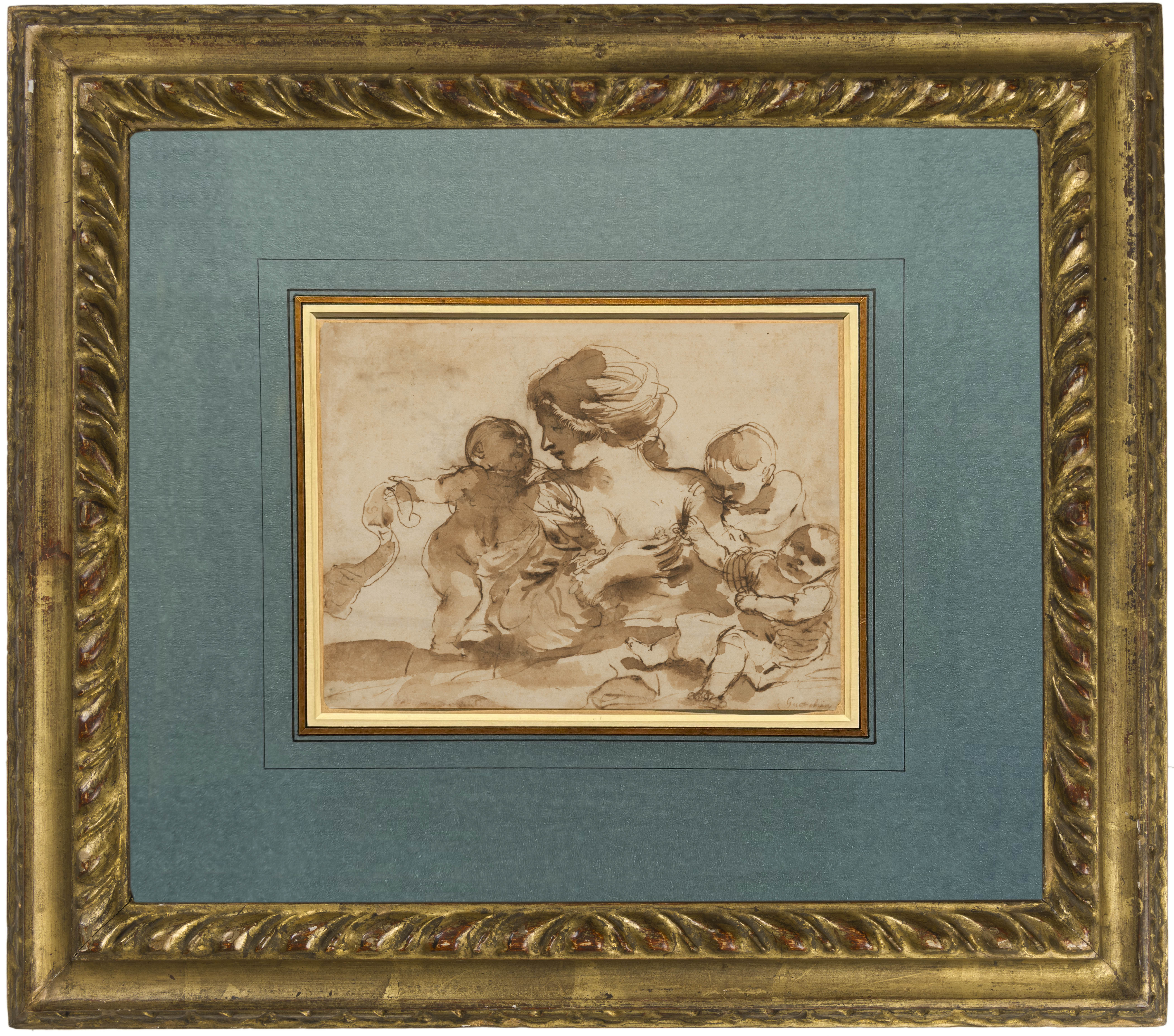Guercino was among the most prolific draughtsmen of the 17th century in Italy, and his preferred medium was pen and brown ink, although he also worked in red chalk, black chalk, and charcoal. He appears to have assiduously kept his drawings throughout his long career, and to have only parted with a few of them. Indeed, more drawings by him survive today than by any other Italian artist of the period. On his death in 1666 all of the numerous surviving sheets in his studio passed to his nephews and heirs, the painters Benedetto and Cesare Gennari, known as the ‘Casa Gennari’.