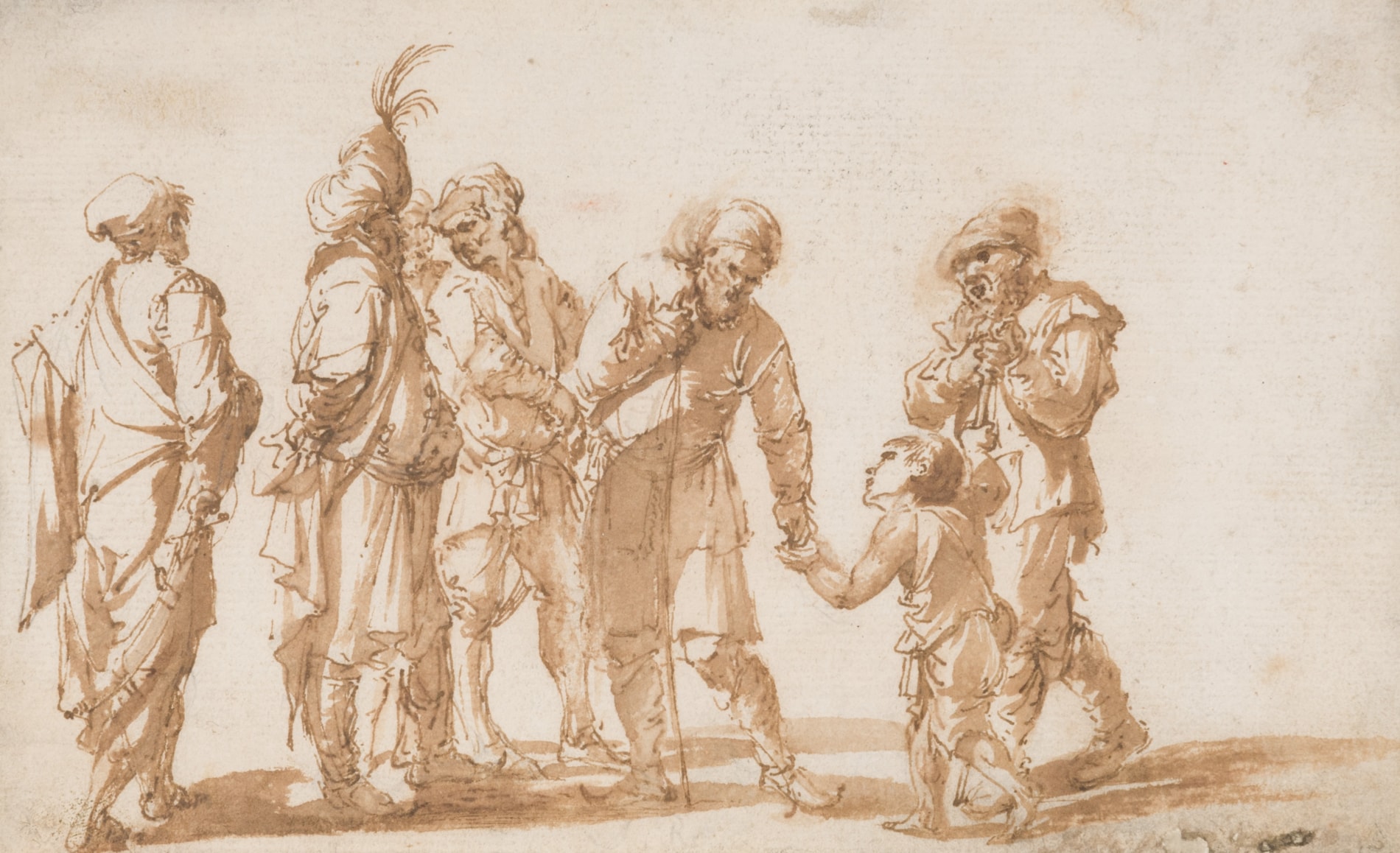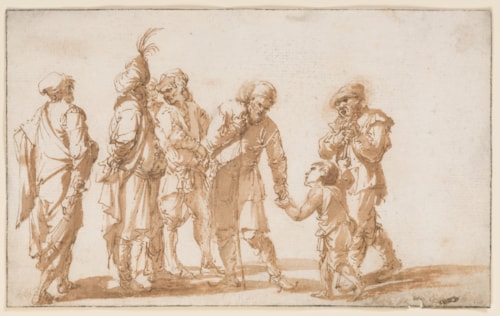 Rosa was a remarkable draughtsman, and his spirited, exuberant drawings were highly praised by connoisseurs even in his own day. The bulk of the nine hundred or so surviving drawings by the artist are figure studies, usually in his preferred medium of pen and ink, and often enlivened with touches of wash. Many of the drawings from the early part of his career are signed, and these may have been sold to collectors or presented as gifts to friends or patrons. However, almost no signed drawings dating from after 1649 exist, and it has been suggested that, after his return to Rome, Rosa chose to keep most of his drawings for himself, and not part with them.