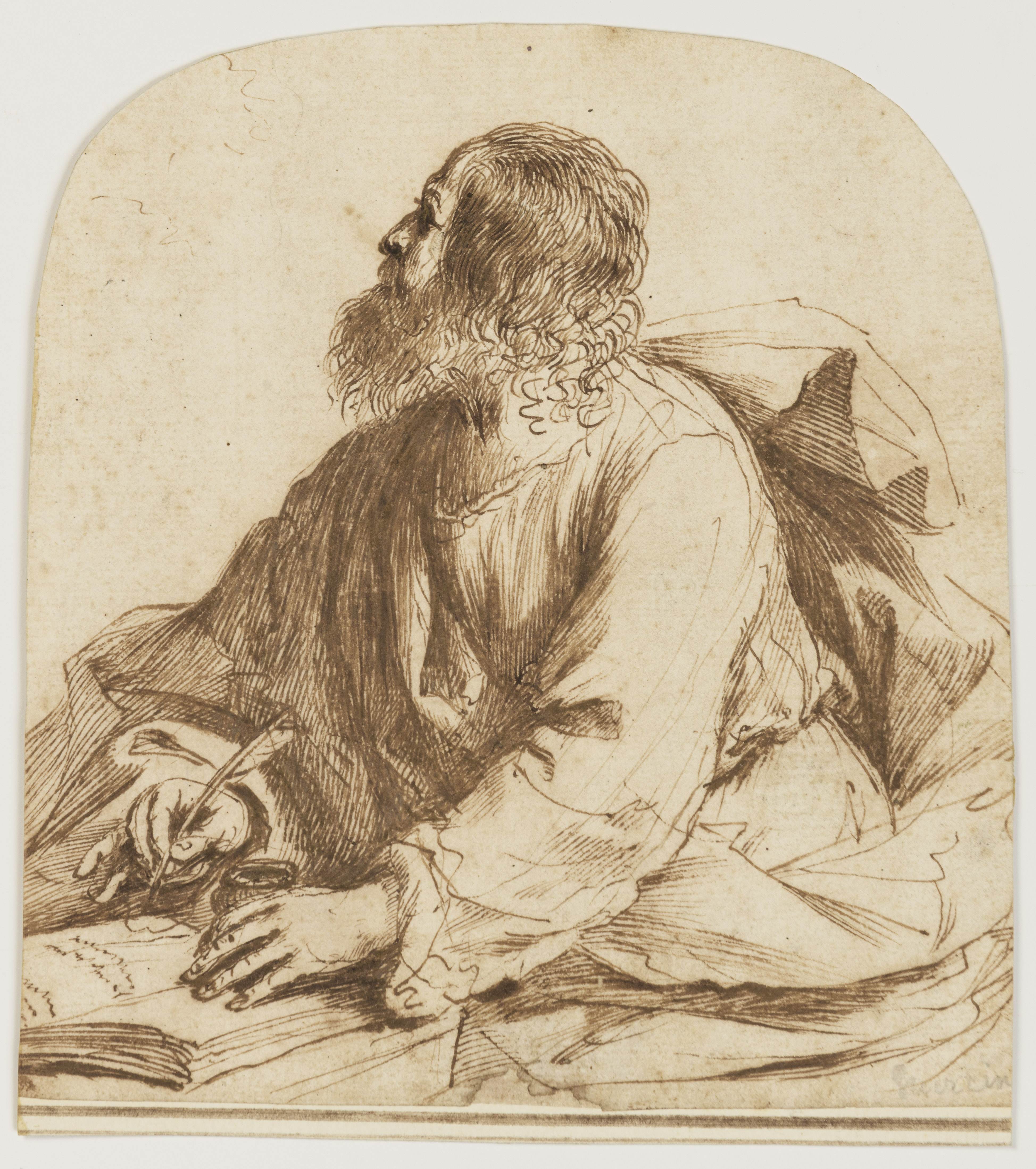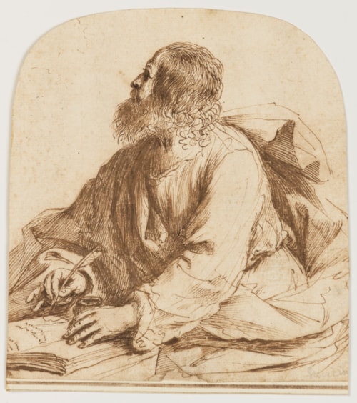 Guercino was among the most prolific draughtsmen of the 17th century in Italy, and his preferred medium was pen and brown ink, although he also worked in red chalk, black chalk, and charcoal. He appears to have assiduously kept his drawings throughout his long career, and to have only parted with a few of them. Indeed, more drawings by him survive today than by any other Italian artist of the period. On his death in 1666 all of the numerous surviving sheets in his studio passed to his nephews and heirs, the painters Benedetto and Cesare Gennari, known as the ‘Casa Gennari’.