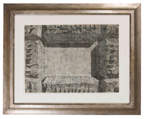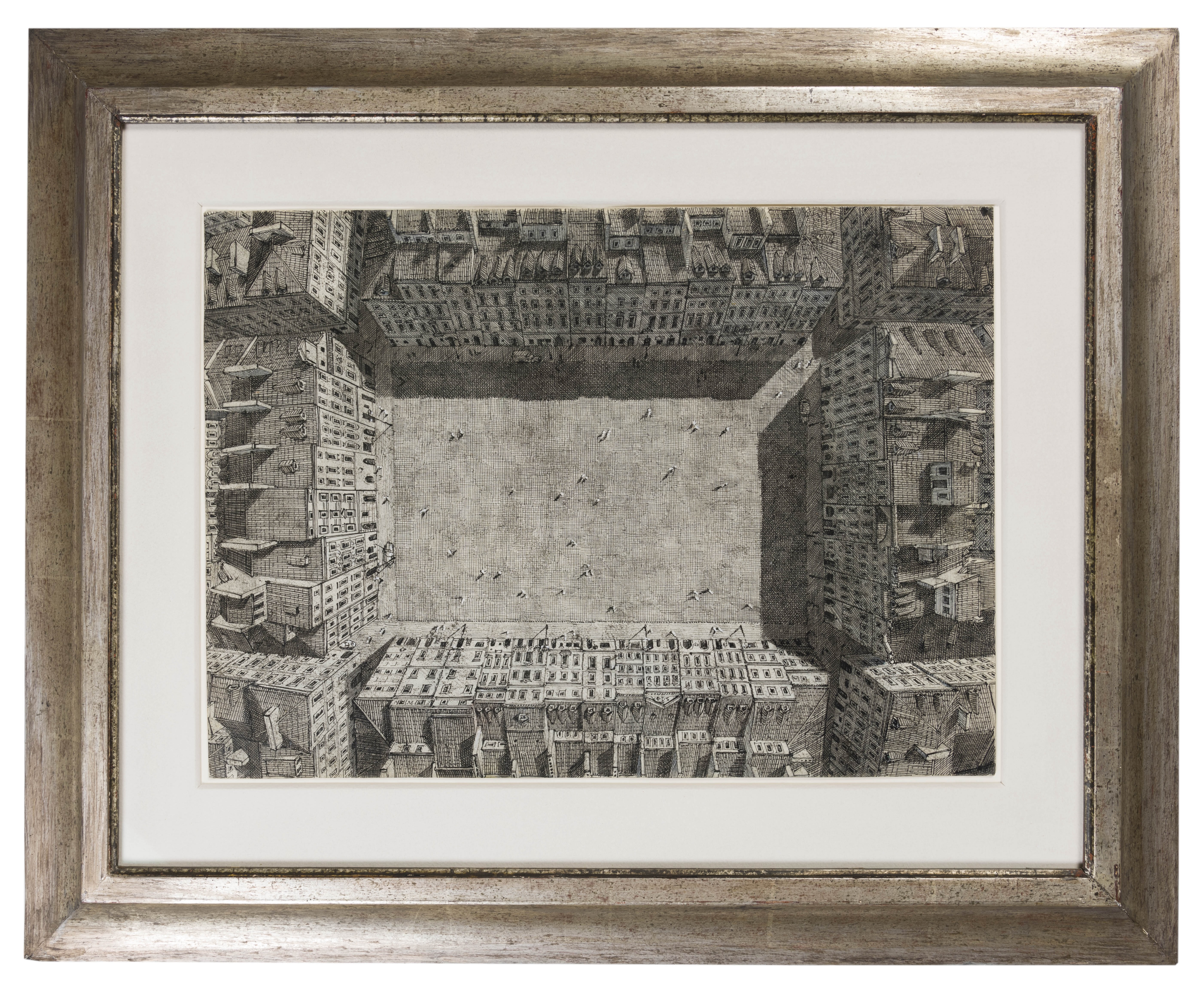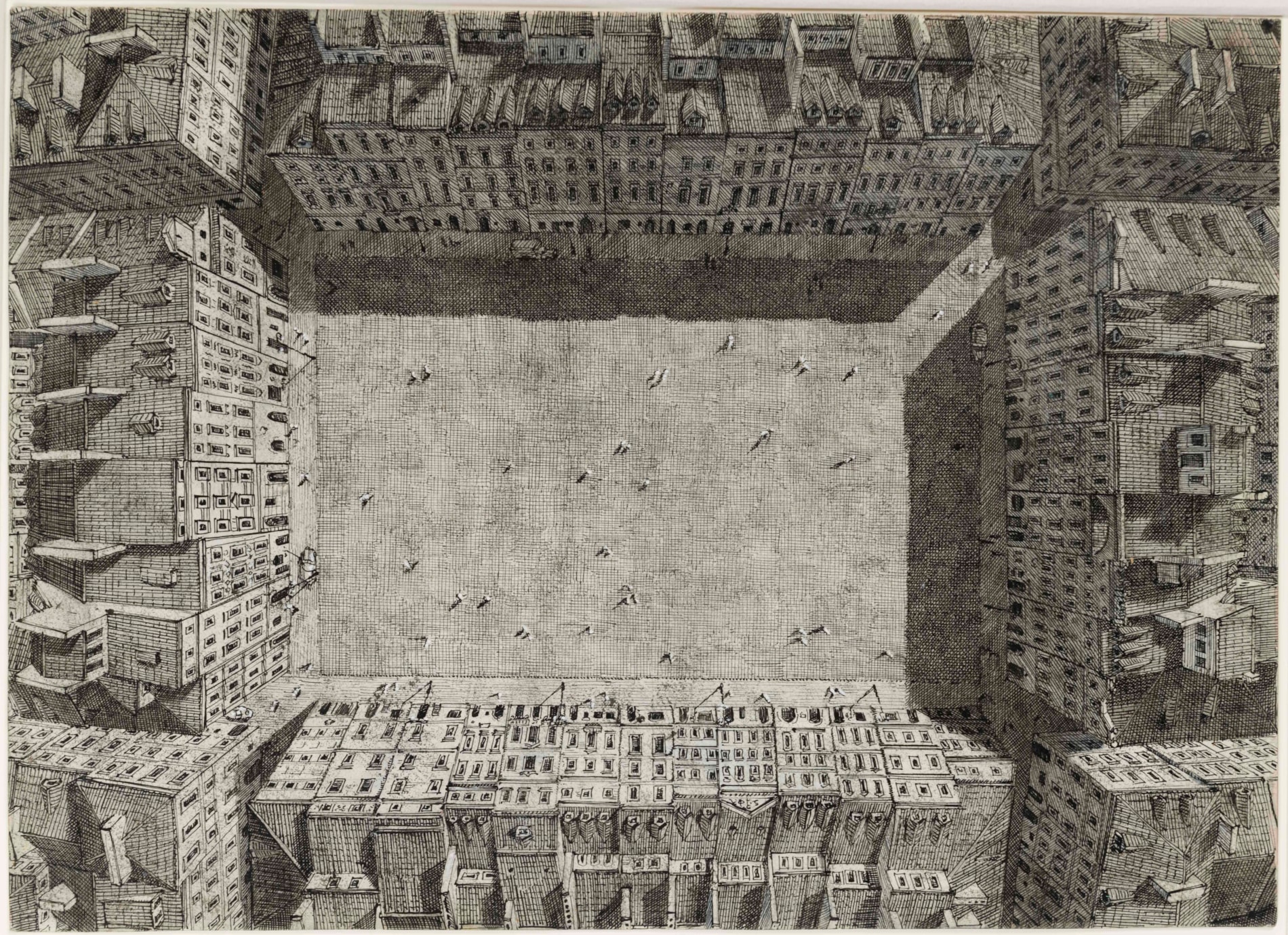 The present sheet was one of five drawings of Warsaw by Gnoli used to illustrate an article by Edith Templeton entitled ‘Warsaw and Peace’, published in Holiday magazine in September 1968. This overhead view of the Old Town Market Place in Warsaw (‘Rynek Starego Miasta’ in Polish) was used as a double-page spread illustration in the magazine, accompanied by the caption: ‘The Old Town Market, one of the finest squares in Europe, has been rebuilt from the ground up since World War II, when 85 percent of the buildings in Warsaw were destroyed.’ In the words of one of Gnoli’s fellow artists and admirers, the English illustrator Paul Hogarth, ‘Gnoli’s imaginative reportage of Warsaw for Holiday remains one of the more remarkable examples of contemporary topographical reporting.’