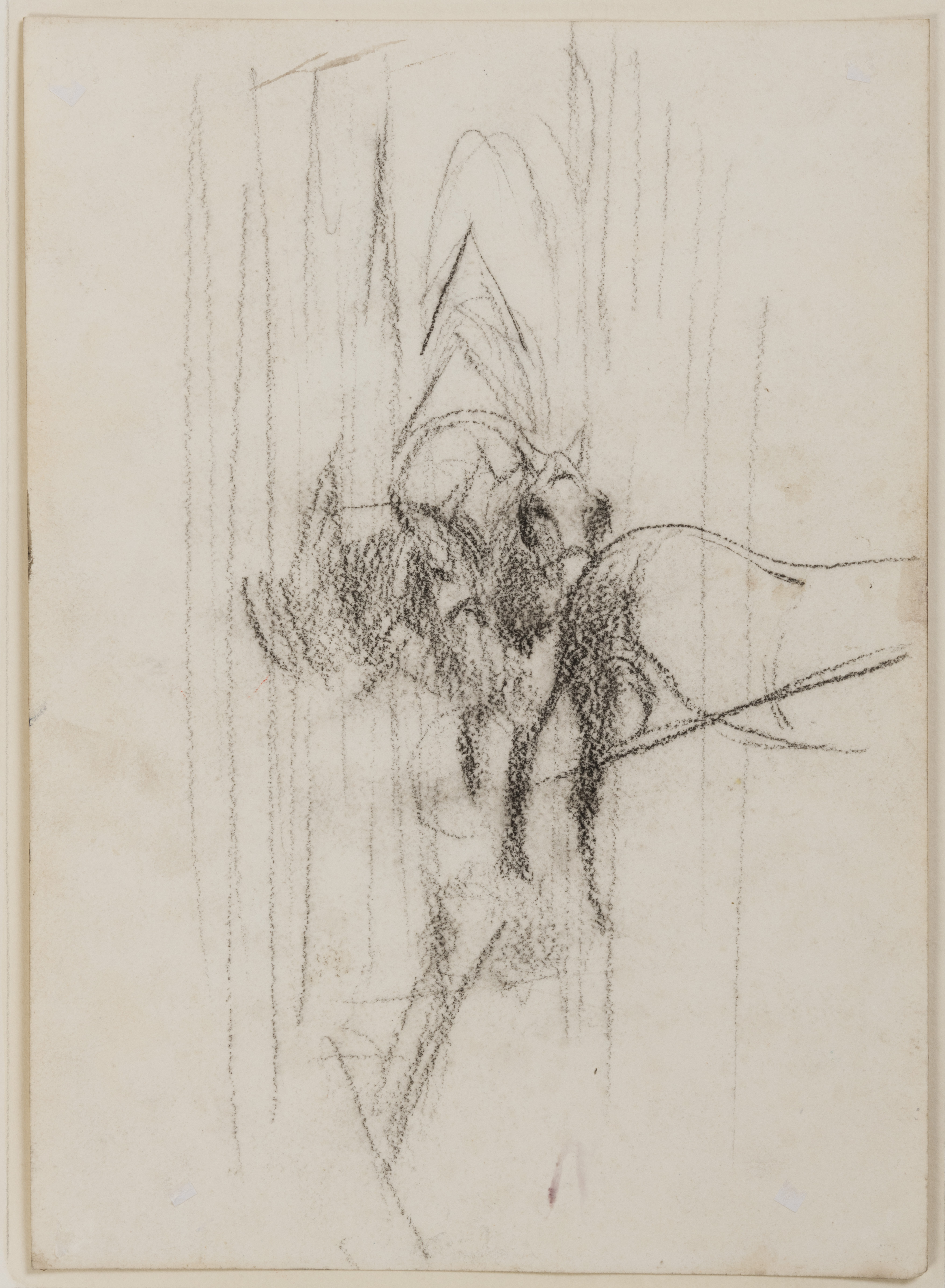 The chalk study of horses on the verso of the present sheet appears to show the portico of a church, quite possiby also at Amiens, in the background.