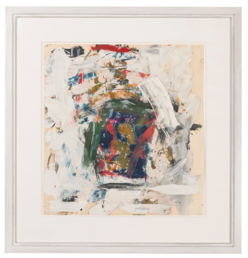 From an early age Goldberg was an aficionado of New York’s jazz scene, and this lifelong passion for jazz music found its way into much of his art and the way he composed his pictures. Among his friends was the poet and museum curator Frank O’Hara, who dedicated several poems to the artist, and in 1960 the two collaborated on Odes, a book of poems and prints. In 1962 he took over Mark Rothko’s studio on the Bowery, on the Lower East Side of Manhattan. Both he and his wife, the artist Lynn Umlauf, taught at the School of Visual Arts in New York, and in the 1980s the couple began spending part of each year living in Tuscany. Goldberg never abandoned the manner of powerful, gestural painting, noting in a 2001 interview that, ‘For me, the concept of abstract painting is still the primary visual challenge of our time. It might get harder and harder to make an abstract image that’s believable, but I think that just makes the challenge greater.’