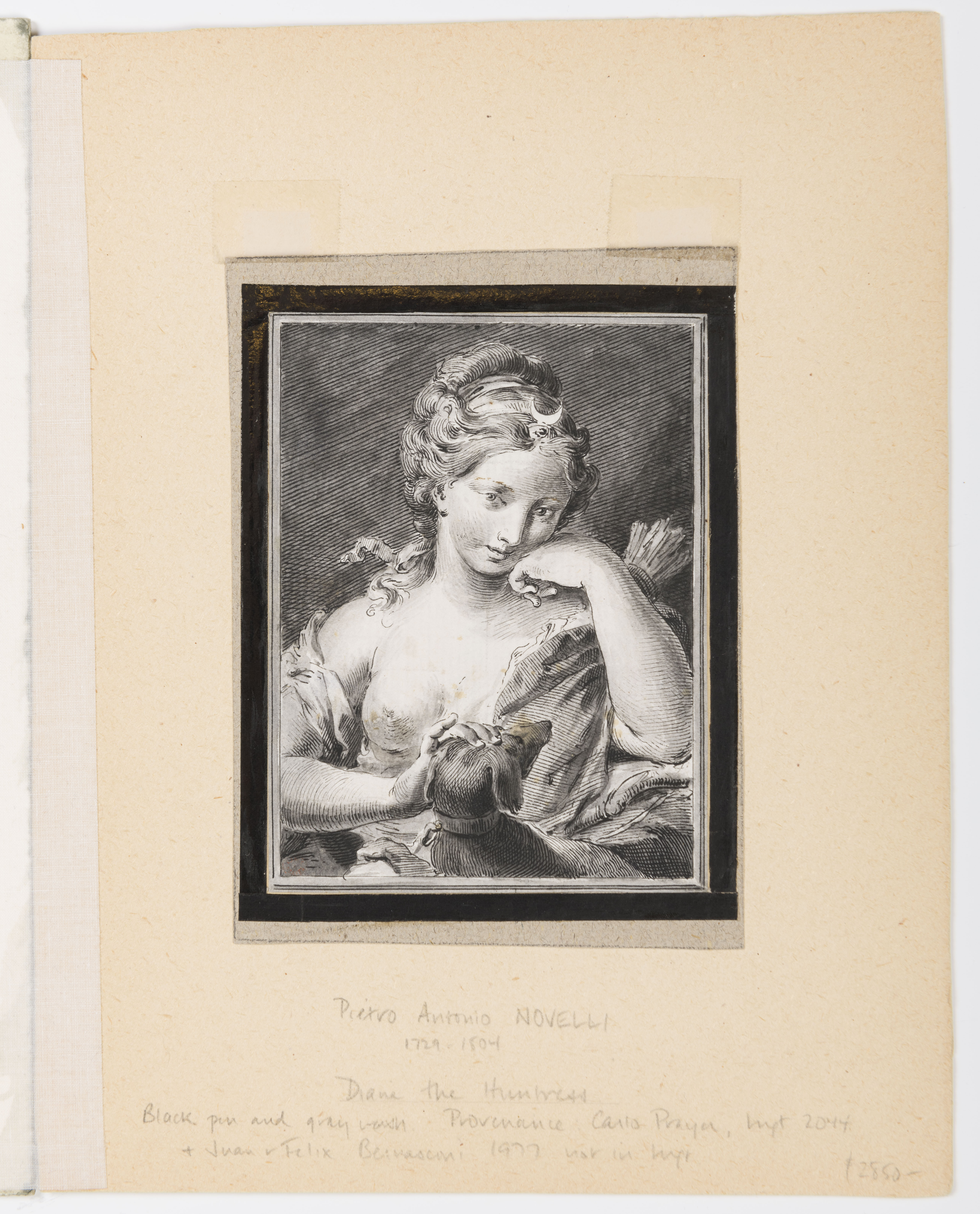 Novelli is best known today for his drawings. He was an inventive and versatile draughtsman, and, as one contemporary source noted, ‘The drawings and painted works by Novelli showed not just a profound knowledge, but also a supreme degree of fantasy, and I myself saw him change in ten and more ways the same subject.’ His many and varied drawings – executed in both pen and ink and watercolour and, more rarely, in red chalk - include studies for paintings and altarpieces, as well as a significant number of designs for book illustrations, prints and frontispieces. Large groups of Novelli’s lively and colourful drawings are today in the collections of the Museo Correr in Venice, the Ecole des Beaux-Arts in Paris, the Cooper-Hewitt National Design Museum in New York and the Albertina in Vienna.