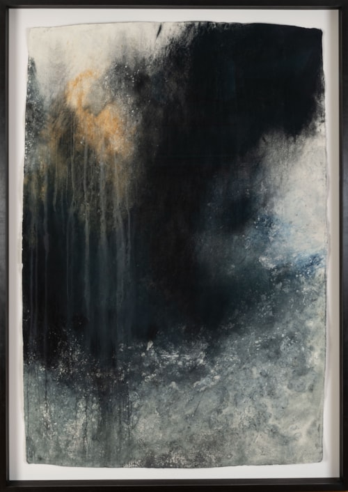 Harrington works primarily on paper, using in particular handmade papers to which she applies pastels, raw pigments and water-based materials, responding to the tactual sensation, fragility and intensity of the medium. Much of her visceral process involves the folding and layering of paper, often applying the pastel or pigment directly onto the sheet laid flat on the floor, while collage and assemblage are also an important part of her method. She works directly with her hands, embedding pastel into paper, which she folds, unfurls, soaks and rubs until the tactile sensibilities of surface and structure resonate with the experiences she is exploring. As the artist has stated, ‘My pieces emerge over many unseen, unresolved layers and erasures, and are folded and unfolded in the process...I believe in, and am sensitive to, the inherent agency of colour and material…Working with paper has become integral to my practice for the intimacy and immediacy it elicits.’