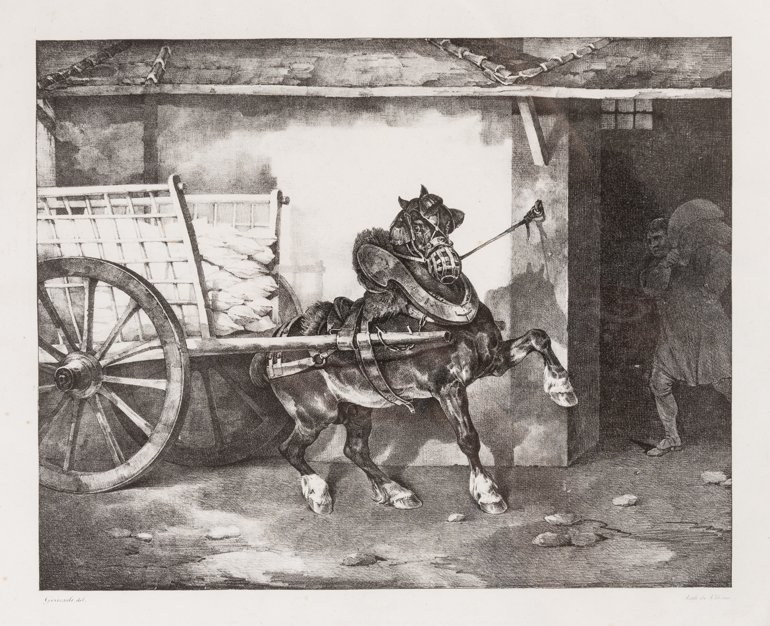A fine impression of the related lithograph by Joseph Volmar (Delteil 86), for the series Études de chevaux of 1823, is sold with the present sheet.