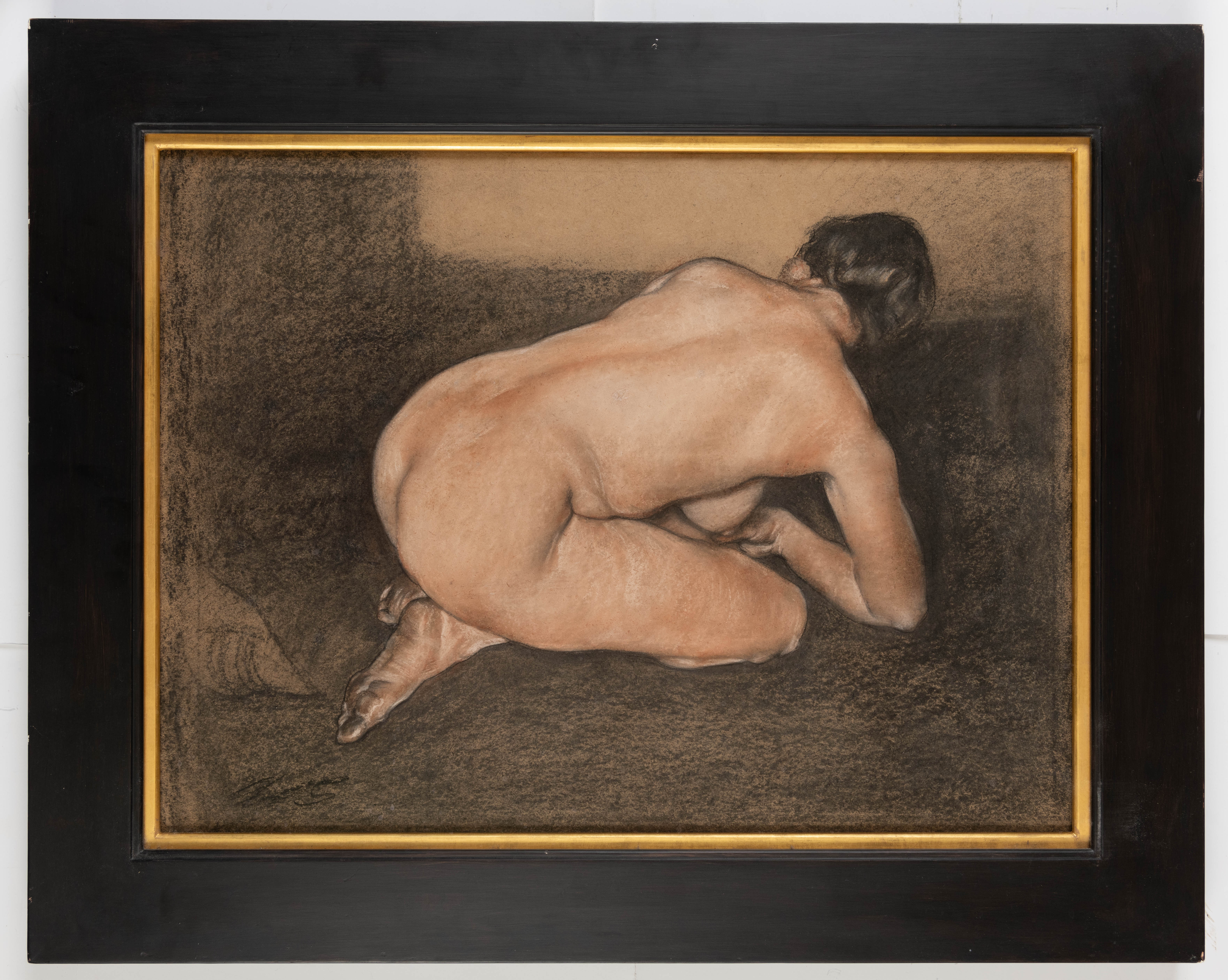 The very large sheet may be dated to the early 1920s, when Spare produced a number of drawings of female nudes characterized by an uncompromising realism. A closely comparable large-scale pastel study of a crouching female nude seen from the front, signed and dated 1923 and of slightly smaller dimensions, is in a private collection