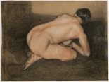 The very large sheet may be dated to the early 1920s, when Spare produced a number of drawings of female nudes characterized by an uncompromising realism. A closely comparable large-scale pastel study of a crouching female nude seen from the front, signed and dated 1923 and of slightly smaller dimensions, is in a private collection