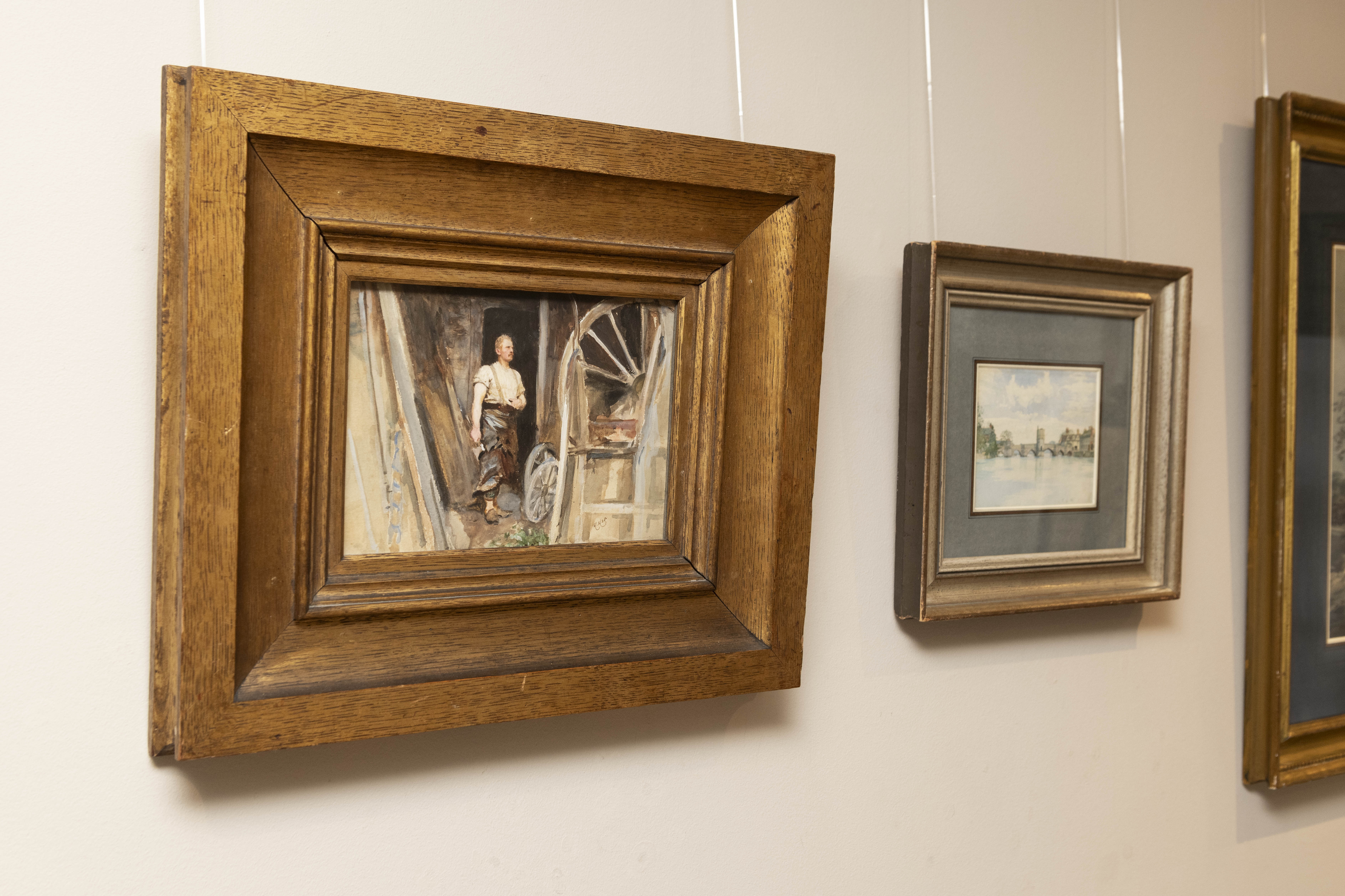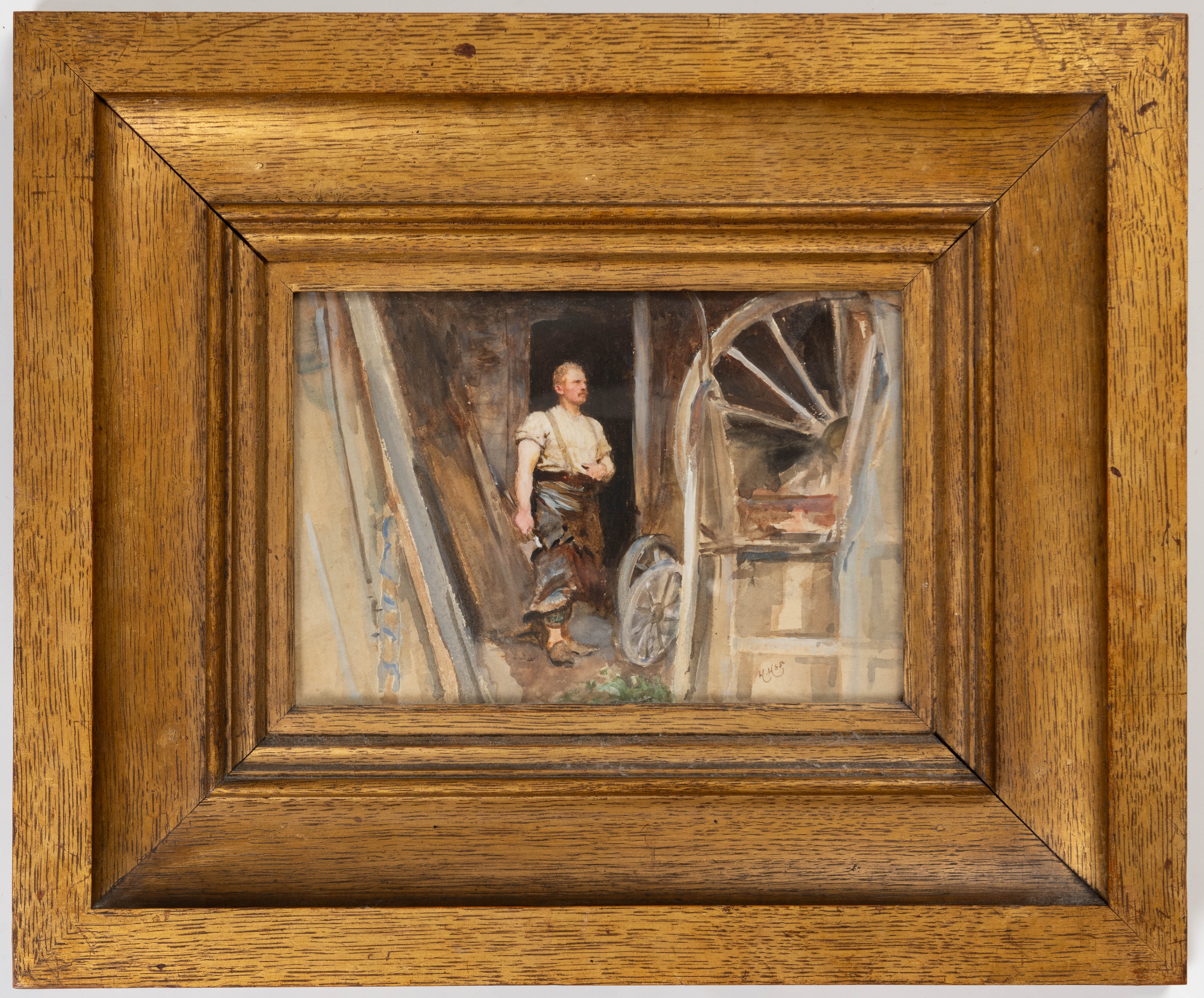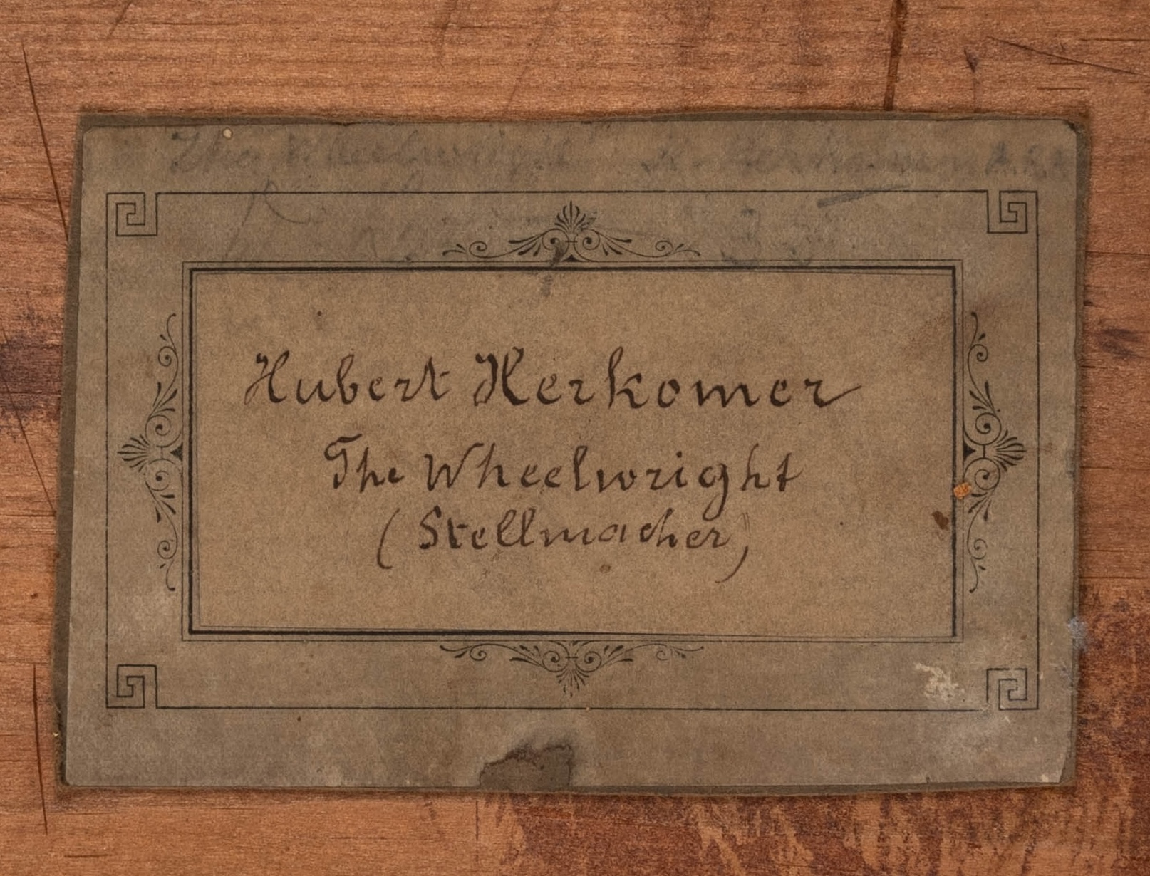Inscribed Hubert Herkomer / The Wheelwright / (Stellmacher) on a label attached to the reverse of the frame.
