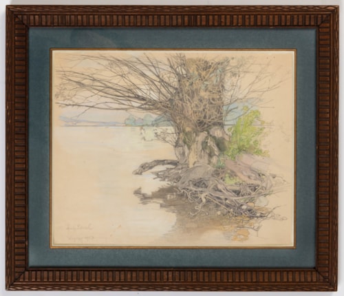 The Austrian landscape draughtsman and printmaker Friedrich (Fritz) Lach was born into an artistic family, being the nephew of the flower painter Andres Lach and the great-nephew of one the most significant painters of the Biedermeier period, Ferdinand Georg Waldmüller. Although he received his artistic training at the academies of Vienna and Munich, he worked for a Danube shipping company for several years in the 1890s before committing to an artistic career around the turn of the century and settling in Vienna. Lach was an active member of both the Austrian Artist’s Association and the Dürerbund, the German society of artists and writers, and won a number of awards, prizes and civic decorations. The artist exhibited his landscape watercolours, often in frames he designed himself, in Vienna and Linz. He died of a stroke in 1933 and was buried with honour in Vienna’s central cemetery.