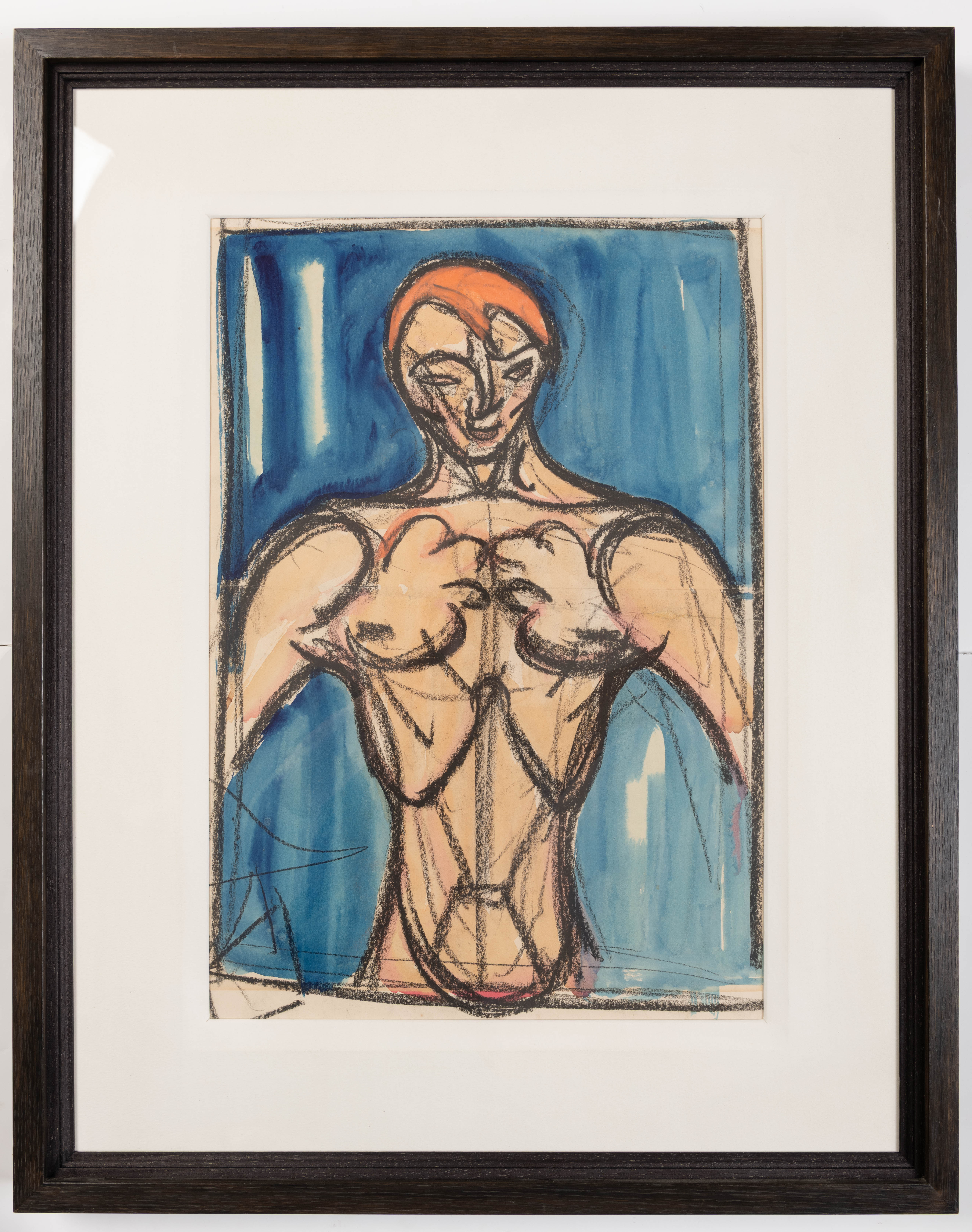 Two closely comparable watercolour and chalk studies of male nude torsos, both likely drawn in 1913 and of similar dimensions to the present sheet as well as sharing some of the same provenance, appeared on the London art market in 1984 and 2002. A study of a male torso drawn in red ink and black chalk, in the Musée des Beaux-Arts in Orléans, may also be likened to the present sheet. In its powerful modelling, this drawing also bears a noticeable resemblance to a full-face Self-Portrait drawn in pencil, dated 1912, in the collection of the National Portrait Gallery in London.