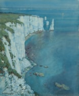 Old Harry Rocks is the name given to three chalk sea stack formations at Handfast Point, at Studland Bay on the south coast of Dorset. The Rocks, which mark the easternmost point of the Jurassic Coast of East Devon and Dorset, were once part of a long stretch of chalk running between the Purbeck peninsula in Dorset and the Isle of Wight to the east, but were left as headlands by the effects of coastal erosion during the last ice age. As noted by a late 19th century geologist, ‘The “Old Harry” Rocks, off the Point, afford a good illustration of the “stacks” that result from marine denudation, and it is interesting to note that it is due to this long-continued action that the Chalk no longer stretches across the channel to the Needles, off the Isle of Wight, as once it did. Looking towards the land when off the “Old Harry”, we may see the pretty village of Studland nestling in the bay.’