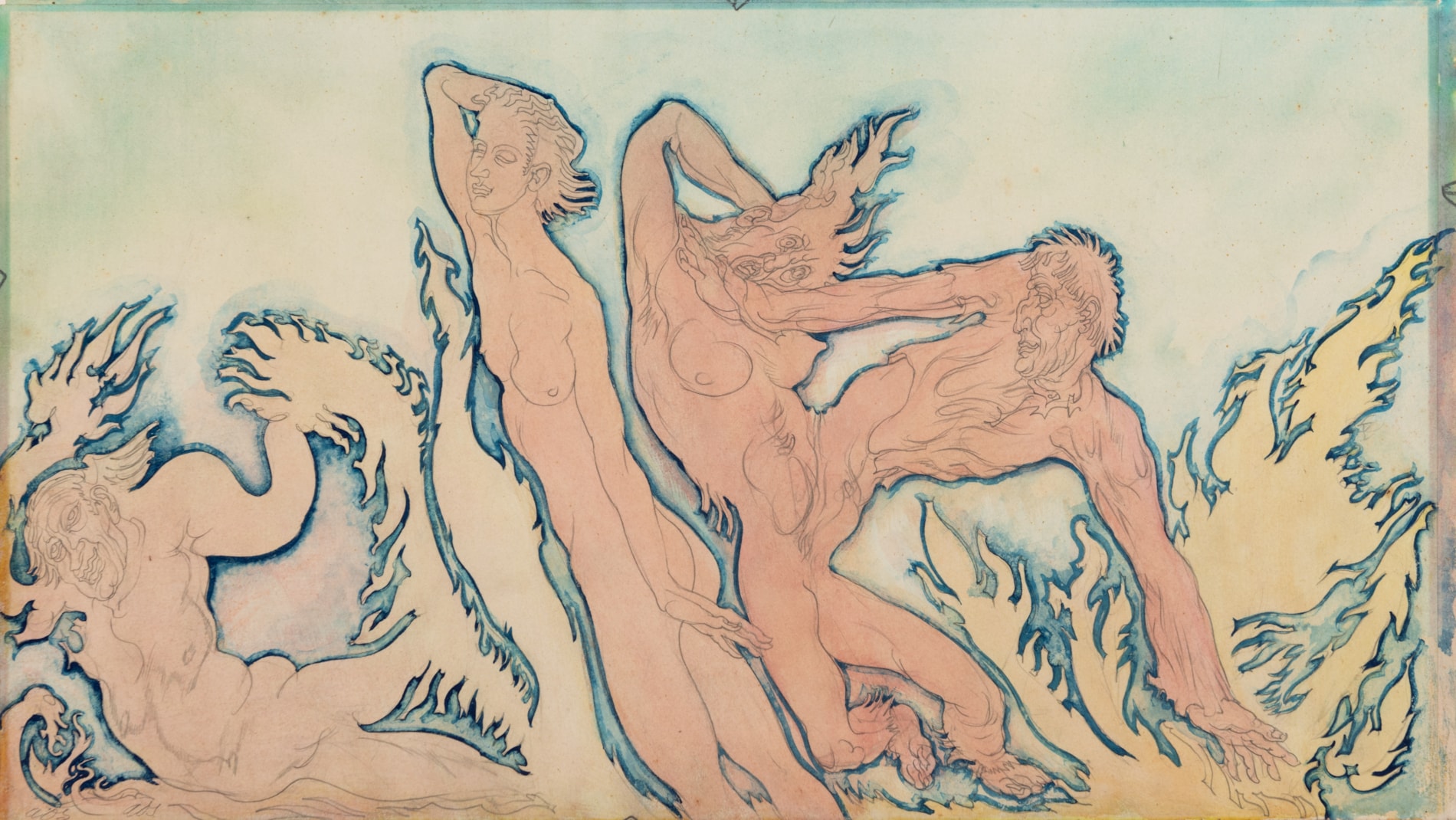 The present sheet may probably be dated to the early 1950s, when Spare produced a number of works devoted to the theme of magic and witchcraft. A similar work entitled Mythical Figures, dated 1935, was sold at auction in London.