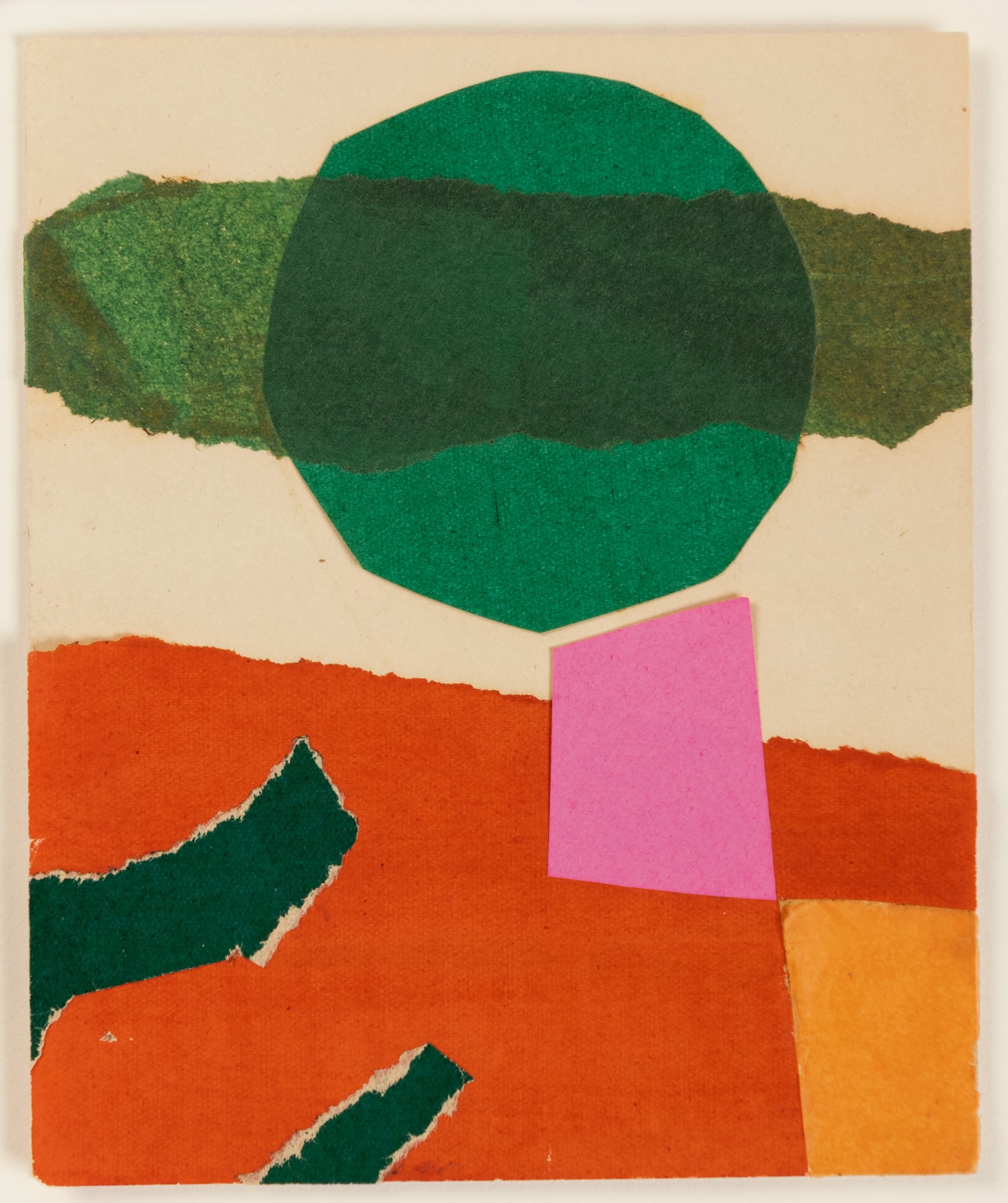 Paper collage on one side of a folded white card.