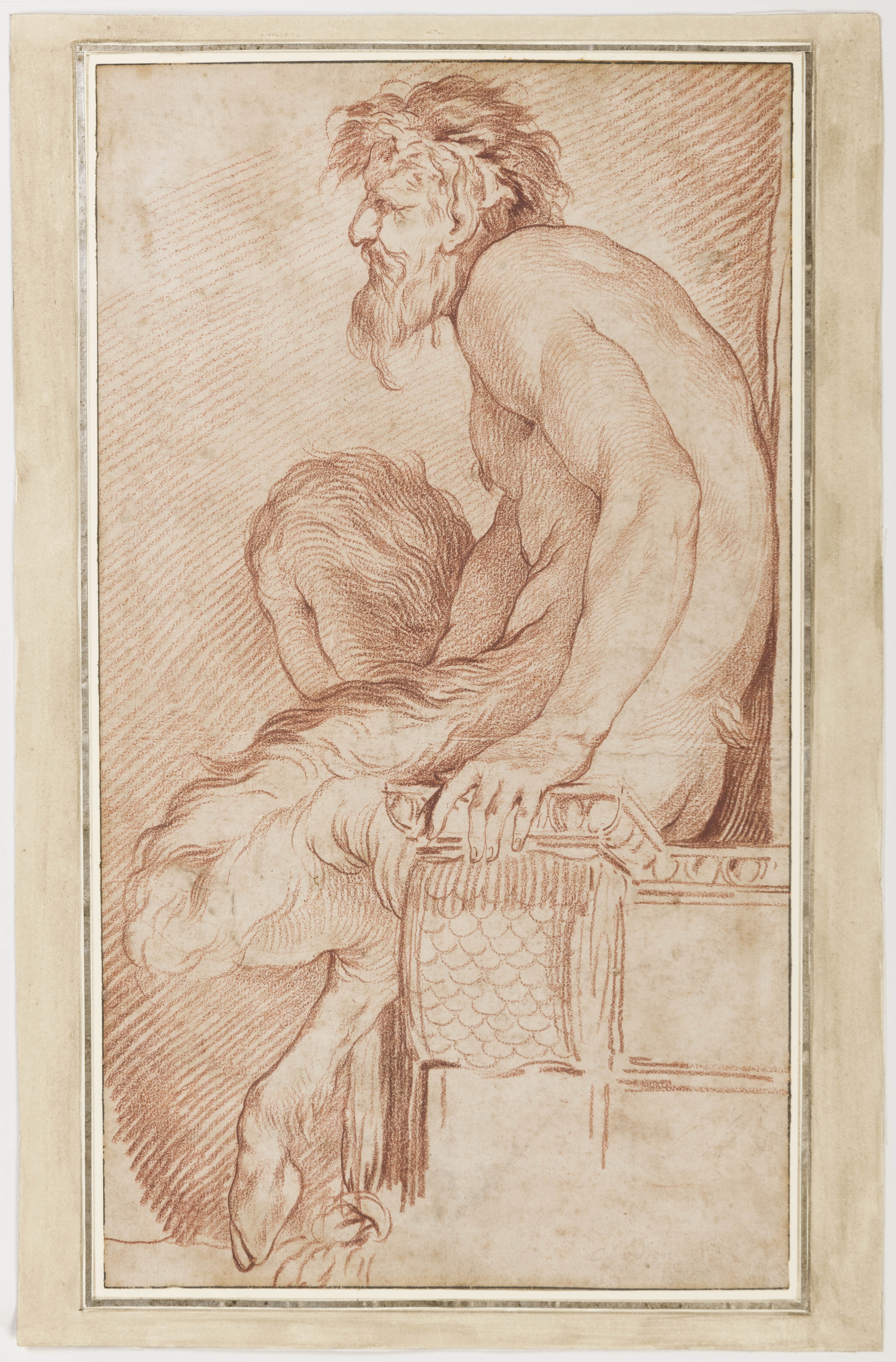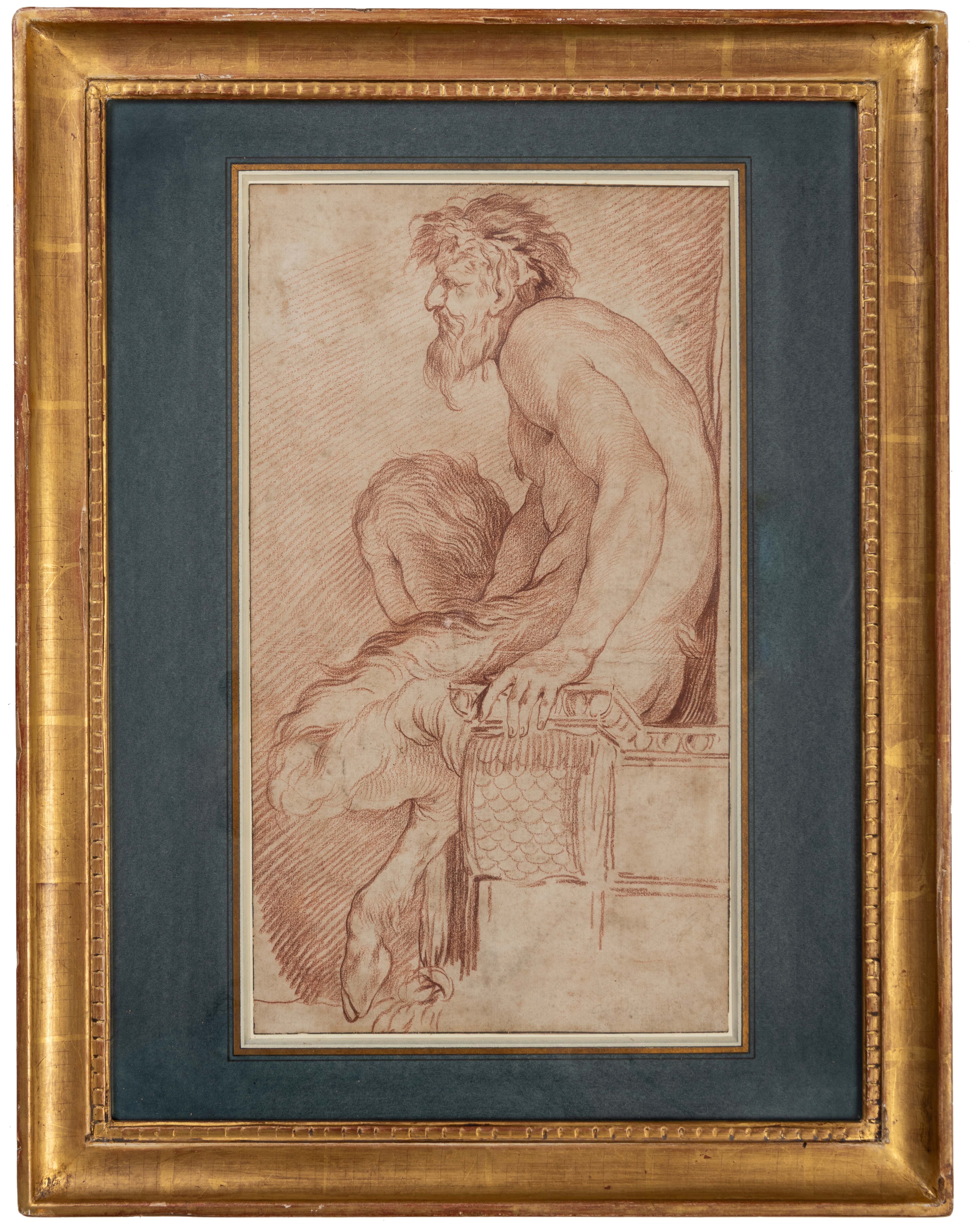 Bouchardon was regarded by connoisseurs, collectors and fellow artists as one of the finest draughtsmen of his day. He was as well known for his drawings as for his sculptural works and indeed chose to exhibit both sculptures and finished drawings (mainly historical and allegorical subjects, as well as portraits) at the Salons. Bouchardon worked almost exclusively in red chalk, and while many of his drawings were intended as preparatory studies for his sculptural projects, many more were done as independent works. That his drawings were greatly admired by his contemporaries is seen in the comments of the artist Charles-Nicolas Cochin, who described Bouchardon as ‘certainly the greatest sculptor and the best draughtsman of his century.’ The 18th century collector and connoisseur Pierre-Jean Mariette likewise rated Bouchardon very highly as a draughtsman and assembled the largest private collection of his drawings, including the present sheet. Similarly, artists as François Boucher, Jean-Baptiste Deshays, Charles-Joseph Natoire and Jean-François de Troy all owned drawings by Bouchardon. Around two thousand drawings by Bouchardon survive today, of which by far the single largest group – numbering around 1,300 sheets, mostly acquired by bequest from the artist’s descendants – is today in the Louvre.
