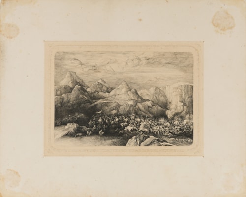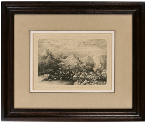 The present sheet may be grouped with a number of elaborate drawings and etchings of battle scenes and vast armies on the march, often placed in barren surroundings or against a rocky mountain landscape, produced by Bresdin in the 1850s and 1860s. Drawings of similar subjects, usually on a small scale, are to be found today in the British Museum in London, the Bibliothèque Nationale in Paris, the Rhode Island School of Design Museum in Providence, the Metropolitan Museum of Art in New York and the Museum Boijmans van Beuningen in Rotterdam, as well as two sheets, one dated 1864 and the other 1865, that were in the Pierre Lafargue collection in Bordeaux in 1978.