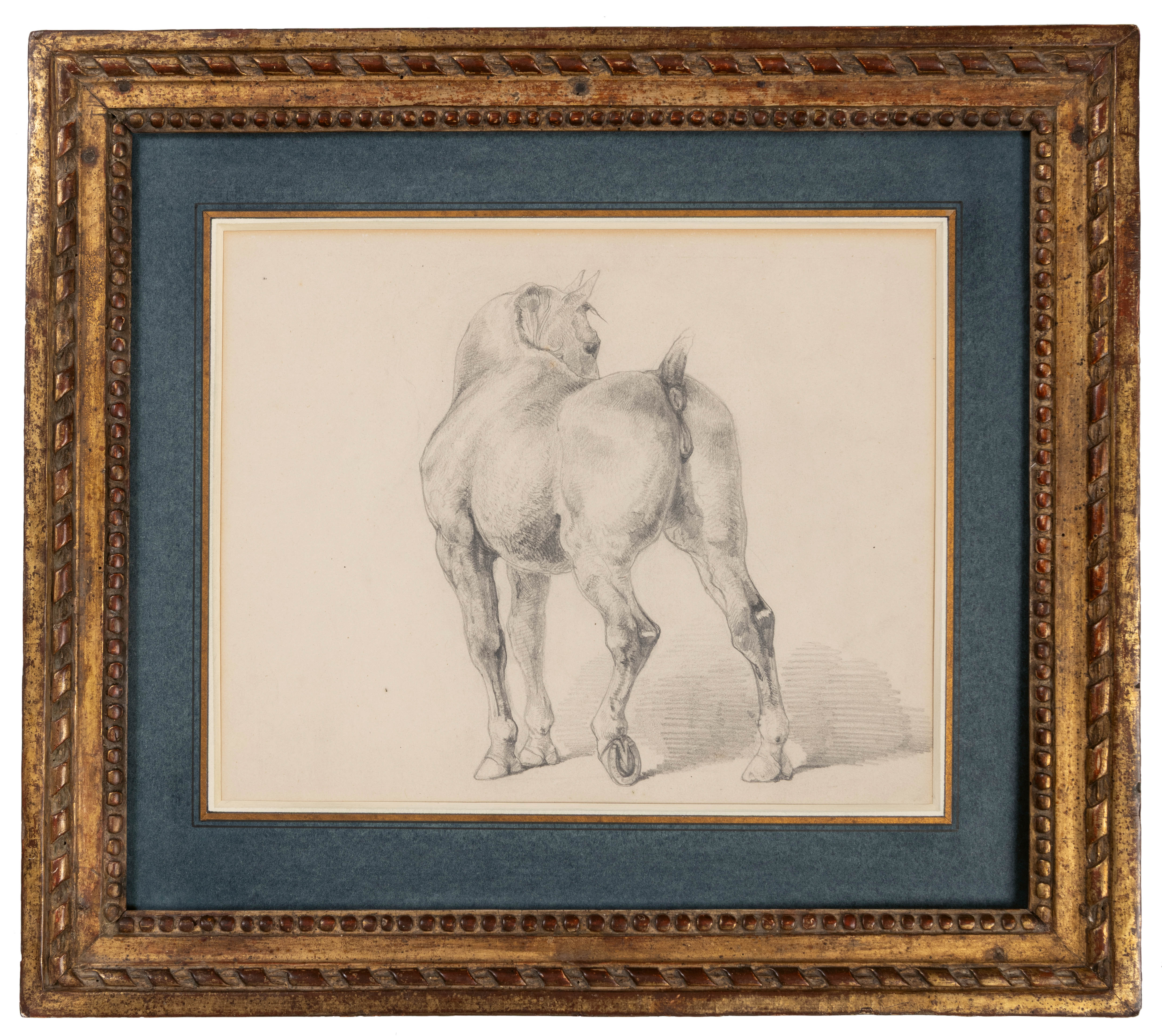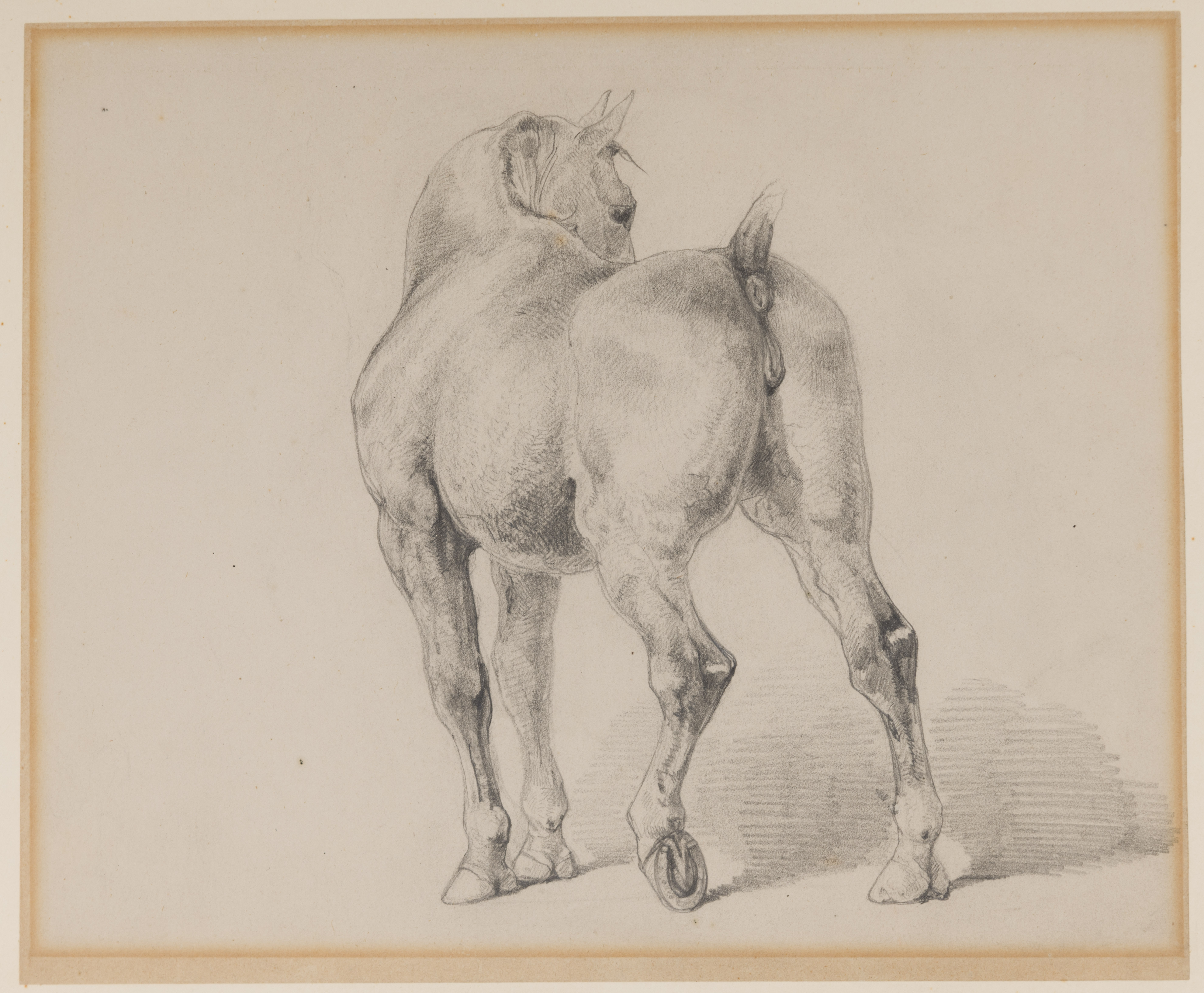 The attribution of this fine sheet to Géricault was confirmed in 1999 by the late Lorenz Eitner, who dated it to between 1818 and 1820 and compared it to a pencil study of a horse raising its hind leg, of similar dimensions, which is part of an album of drawings by Géricault in the collection of the Art Institute of Chicago; that drawing is a study for a finished watercolour of Horses Battling in a Stable of c.1820 now in the Cleveland Museum of Art. Also stylistically comparable are two further pencil drawings of horses, datable to c.1818-1819, in the same Chicago album.