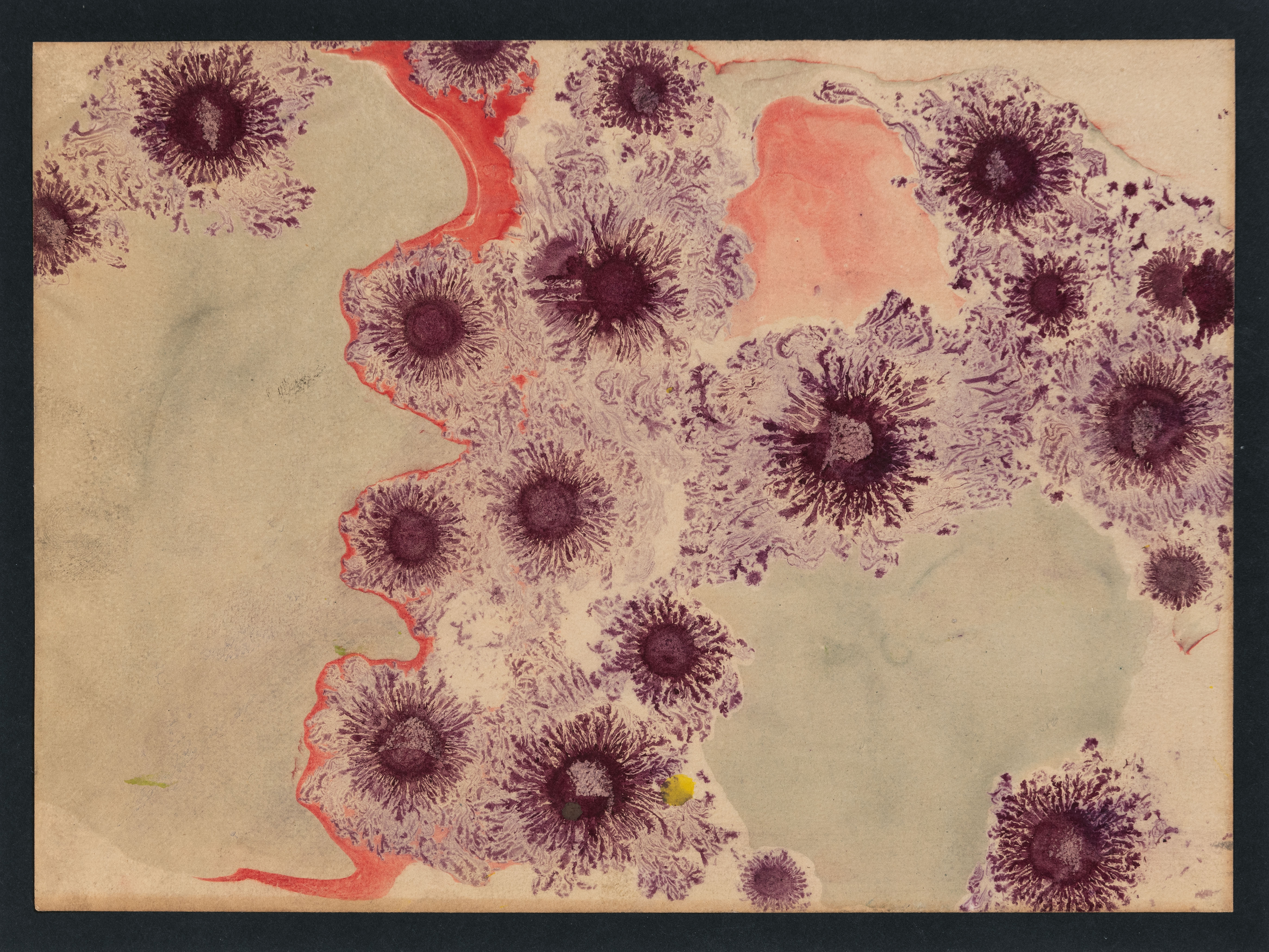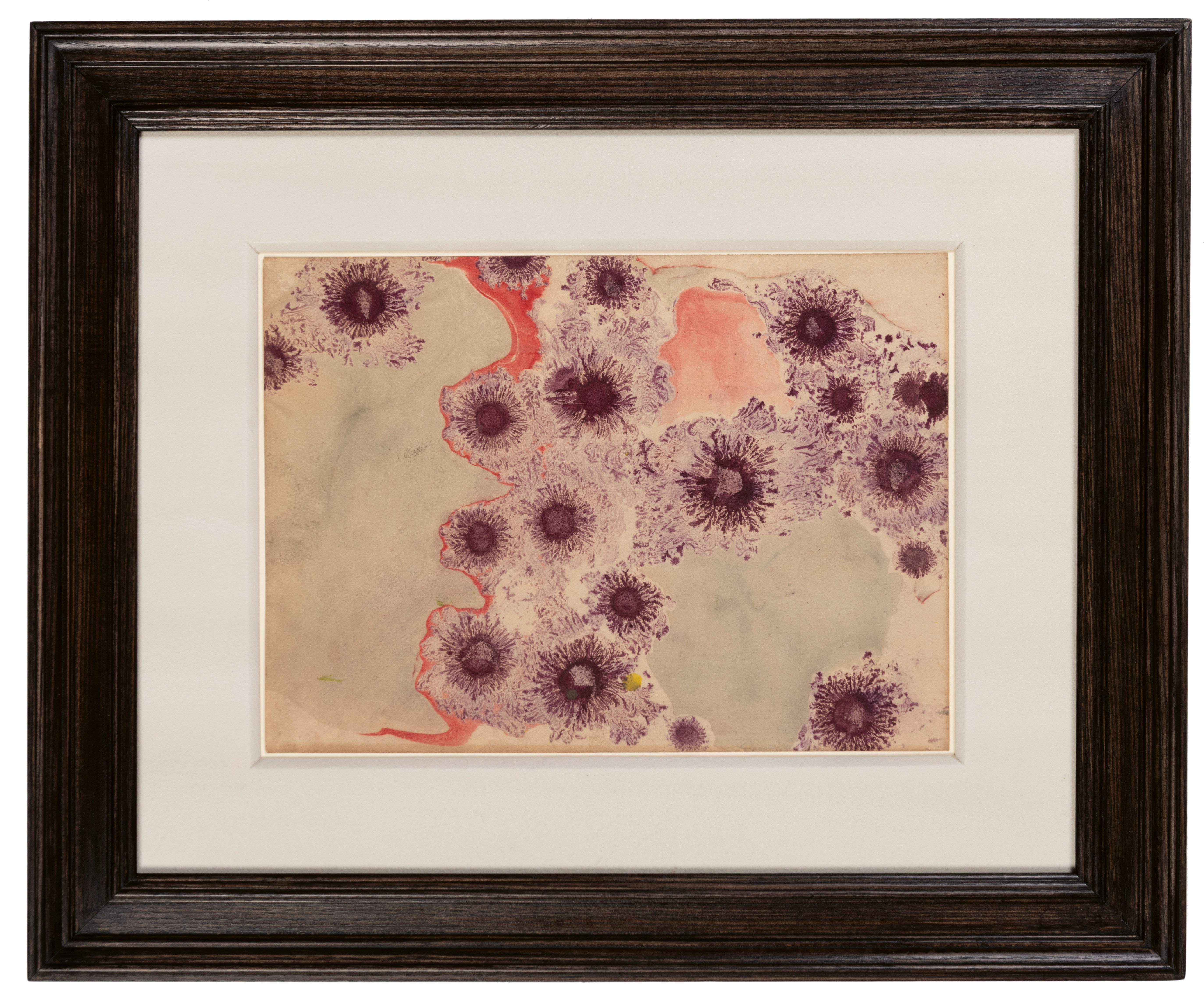The present sheet is among a group of drawings by Emil Pirchan, produced around 1907, using a sort of marbling technique that he seems to have invented. Several such works on paper of this distinctive type can be seen in a 1907 photograph of the hallway of Pirchan’s home in Brno (illustrated in Beat Steffan, ed., Emil Pirchan: A Universal Artist of the 20th Century, Wädenswil am Zürichsee, 2018, pp.158-159), for which the artist designed all of the furnishings. Two similar works on paper are in a private collection in Vienna, while another comparable work has recently been acquired by the J. Paul Getty Museum in Los Angeles.