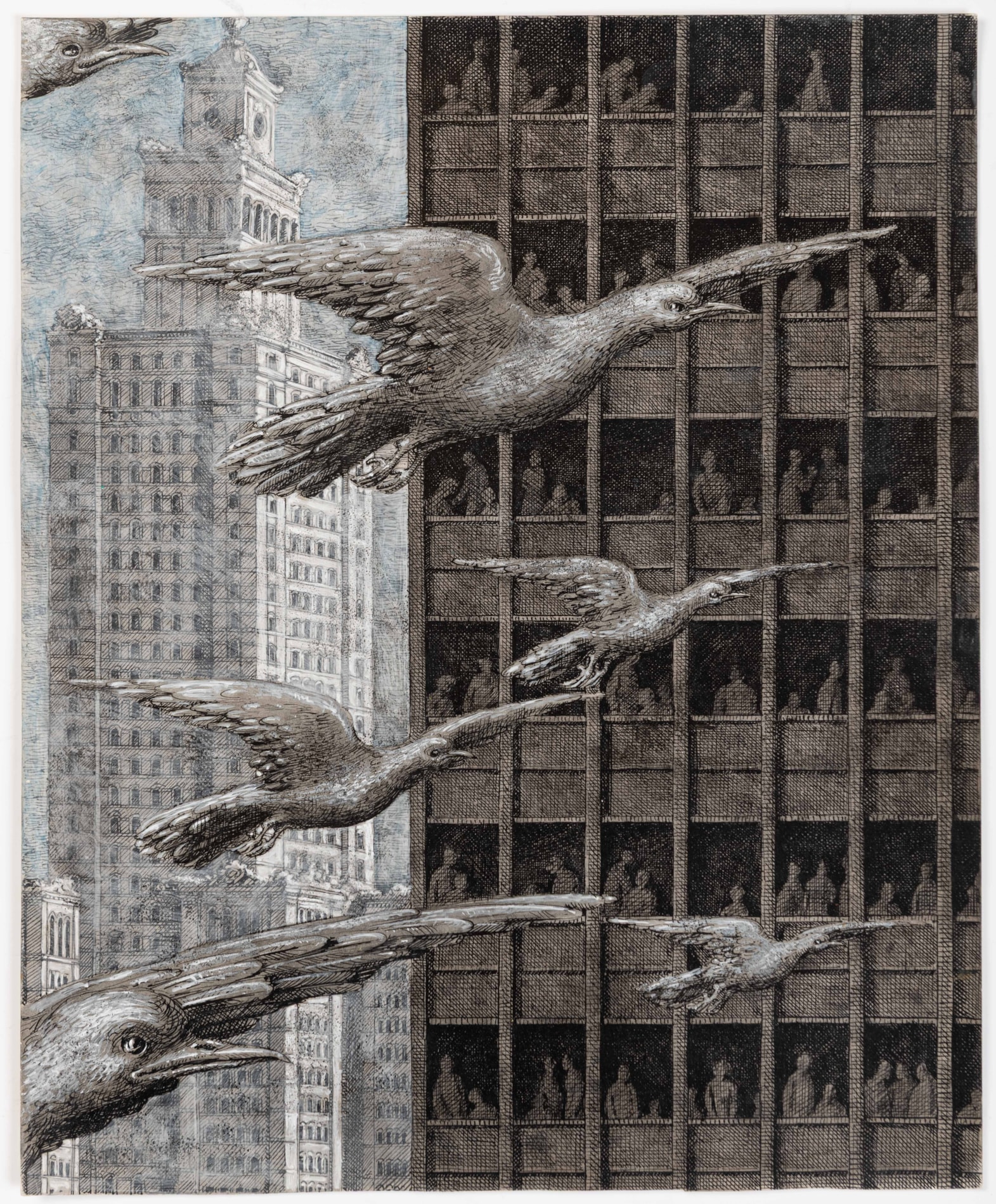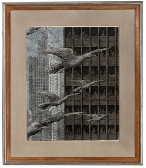 This large sheet was one of five drawings of Warsaw used to illustrate an article by Edith Templeton entitled ‘Warsaw and Peace’, published in Holiday magazine in September 1968. In the words of one of Gnoli’s fellow artists and admirers, the English illustrator Paul Hogarth, ‘Gnoli’s imaginative reportage of Warsaw for Holiday remains one of the more remarkable examples of contemporary topographical reporting.’ Another drawing by Gnoli from this Warsaw trip, an overhead view of the Old Town Market Place used as a double-page spread illustration in Holiday magazine, shared the same provenance as the present sheet and was recently acquired by the Fine Arts Museums of San Francisco.