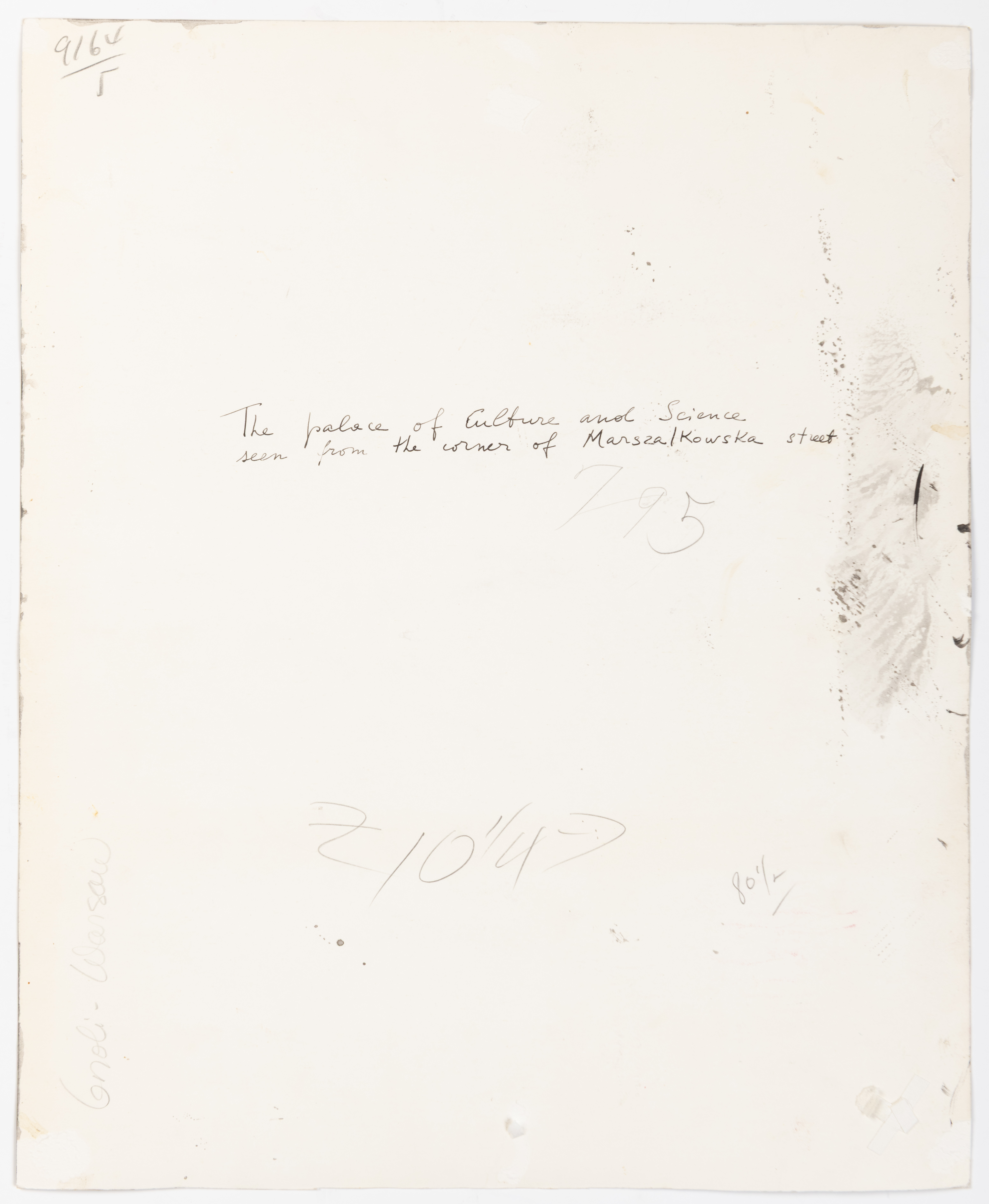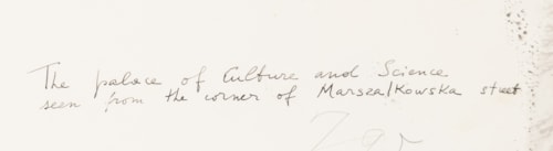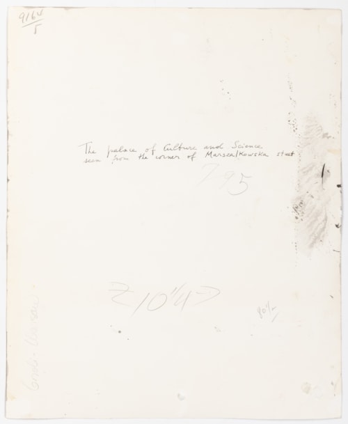 Inscribed by the artist The palace of Culture and Science / seen from the corner of Marsza/Kowska street on the verso.