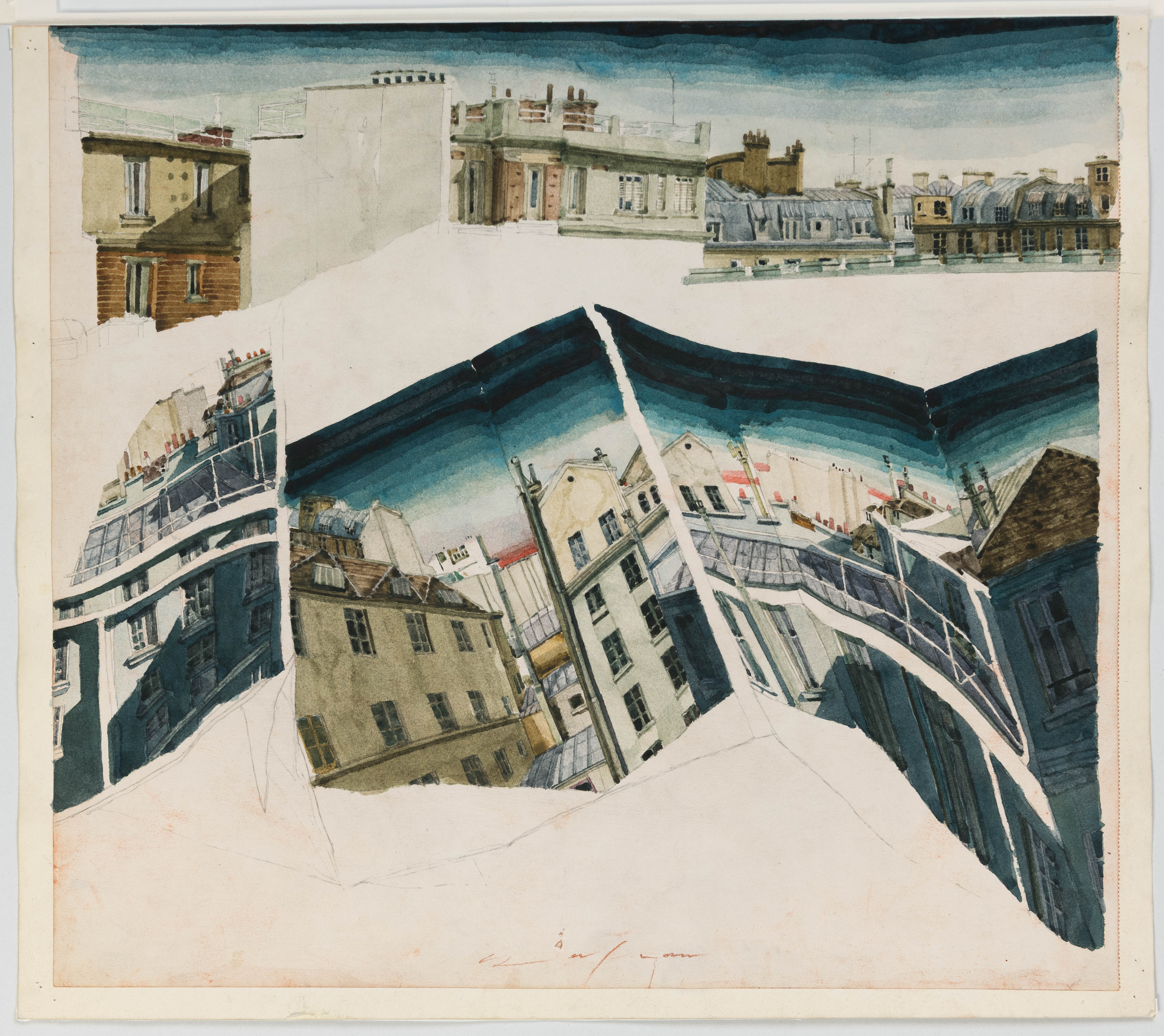 Throughout his career, Sam Szafran concentrated on a small range of subjects, notably views of the interiors of his studios and of staircases seen from above in steep perspectival foreshortening. The present sheet is part of a series of watercolours, for the most part painted on silk, which are devoted to views of the rooftops of Paris. (It may have been drawn from the window of the artist’s home and studio in a former foundry in the Parisian suburb of Malakoff, to which he moved in 1973.) Szafran began painting urban scenes in the early 1990s, initially with exterior views seen through the windows of the staircases that he was so fond of depicting, and gradually expanding to views of interior courtyards and rooftops. For these subjects he chose to work almost exclusively in watercolour, and often on a very large scale. As Szafran later recalled of his initial experiments with the watercolour medium, ‘the extraordinary potential of this living material that is watercolour became apparent. This led to the creation of a first series of works on paper, which Claude Bernard exhibited in 1987 in New York and Paris. After thirty years of charcoal and pastel, watercolour proved to be a particularly fruitful new medium.’