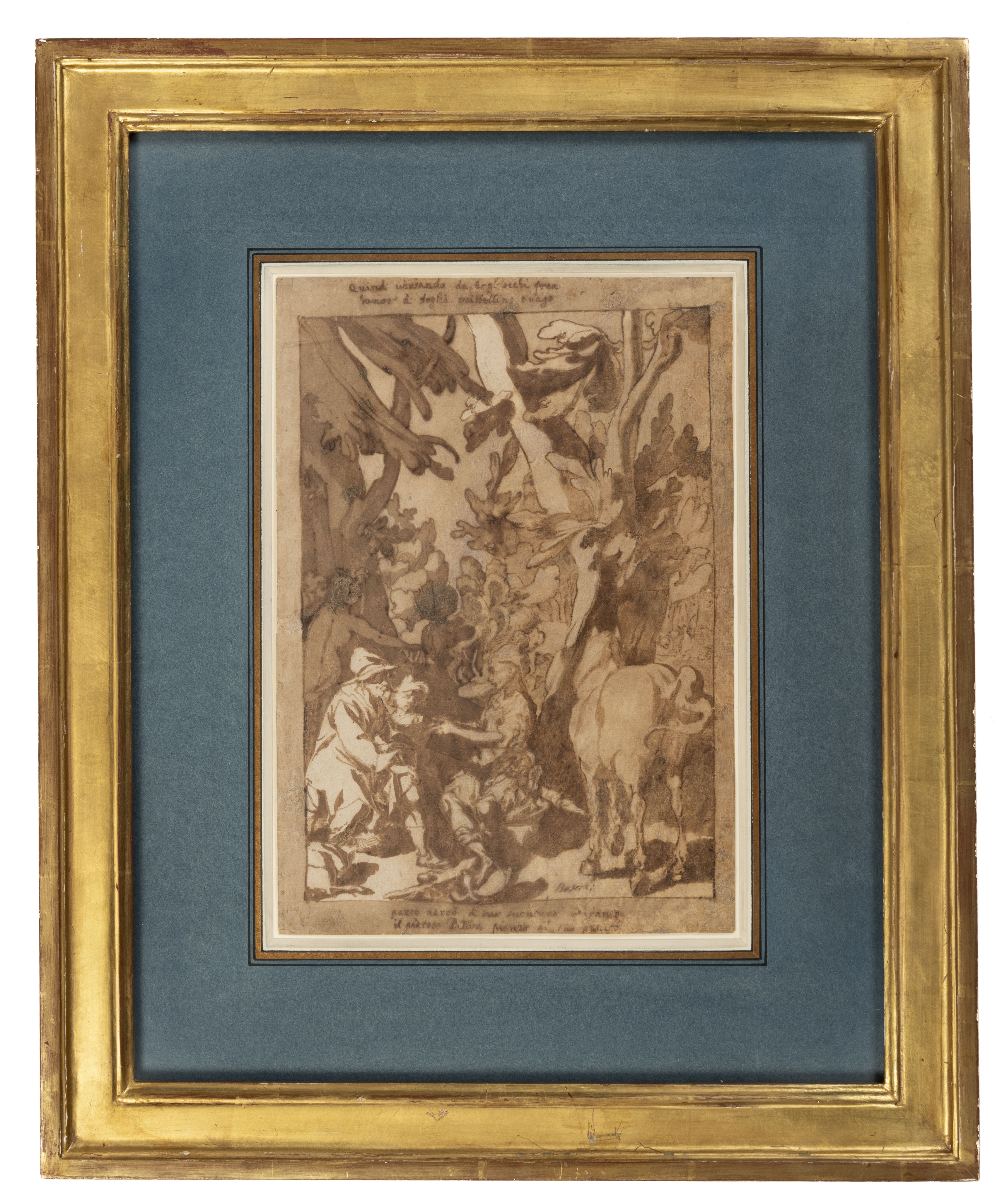 The provenance of Boscoli’s Gerusalemme Liberata drawings can be traced back to the early 17th century, when they are recorded as a group in an inventory, compiled around 1611, of paintings and drawings belonging to an obscure Marchigian collector, Luca Fei of Filotranno, near Ancona. The Fei inventory, written by Father Francesco Orazio Civalli of Macerata, sheds more light on Boscoli’s drawings and their scope. The inventory not only mentions Boscoli’s drawings, praising their quality, but specifies that the original series included twenty drawings and that it focused specifically on depicting the romantic episodes taken from Tasso’s poems. Some scholars have assumed that the series might have been a starting point for a series of engravings or may have been intended as a commission from an erudite private collector, who must have been very familiar with the writings of Torquato Tasso.