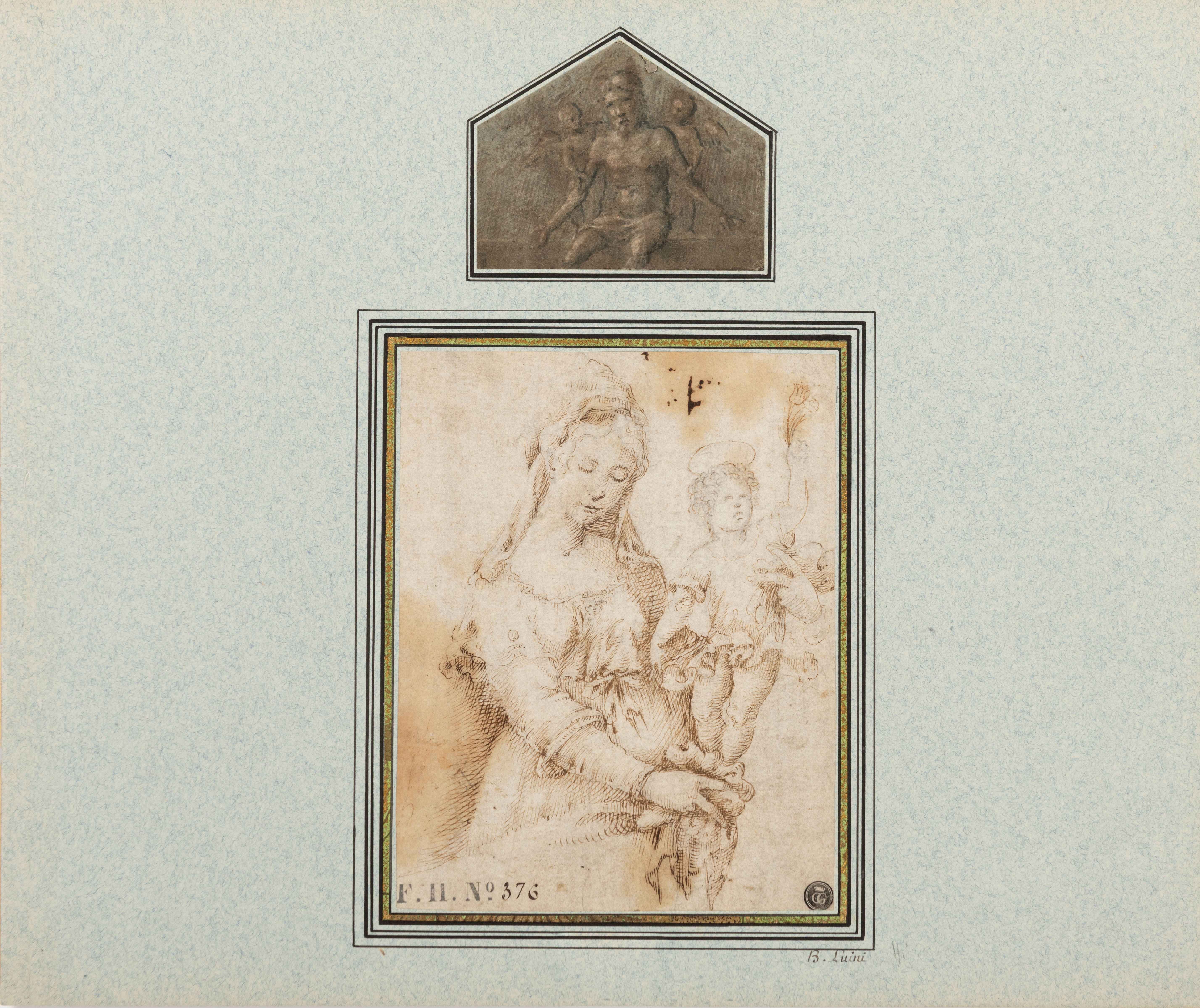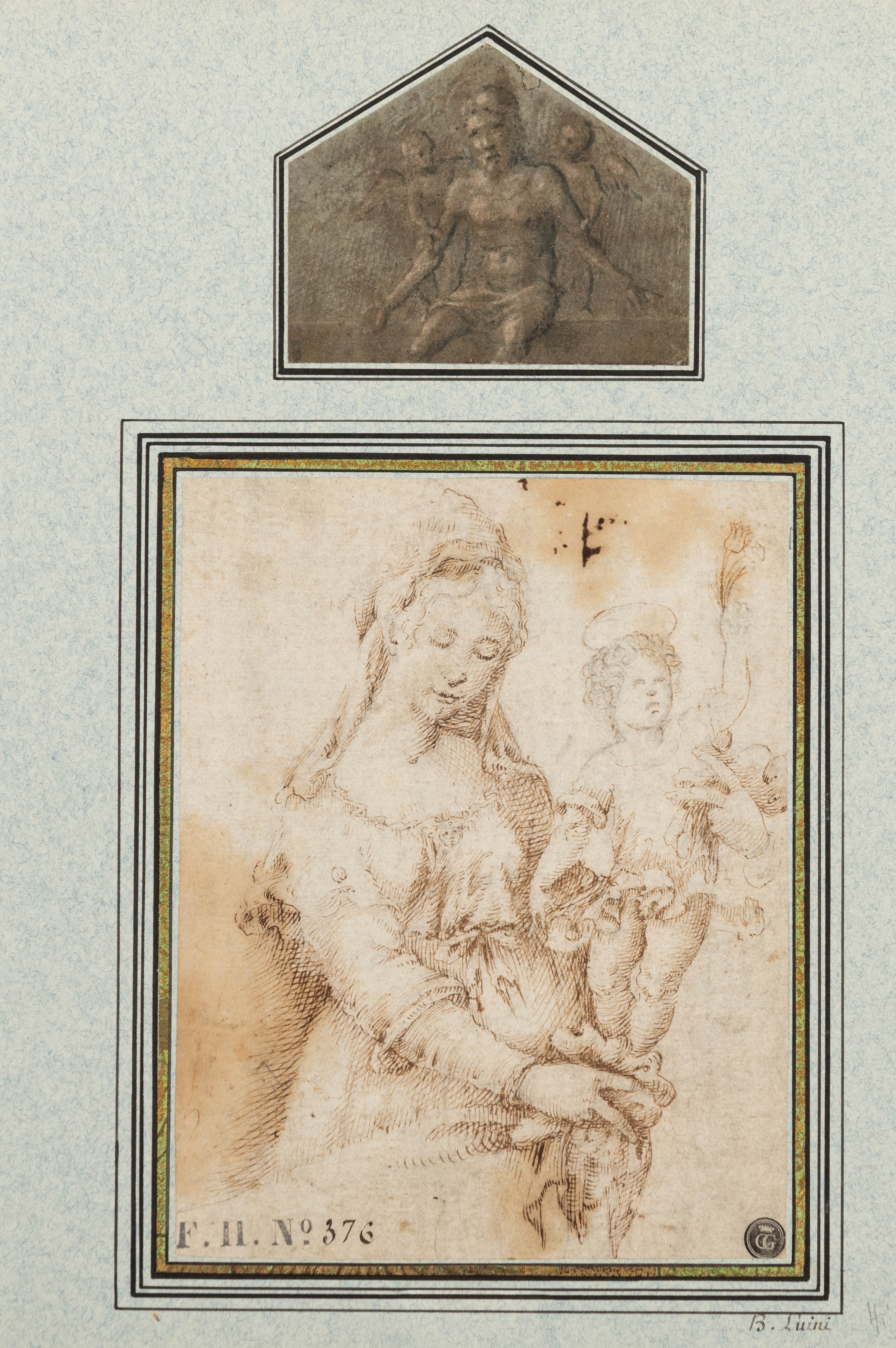 Two drawings mounted together on a 19th century album page, inscribed B. Luini in the lower right margin: