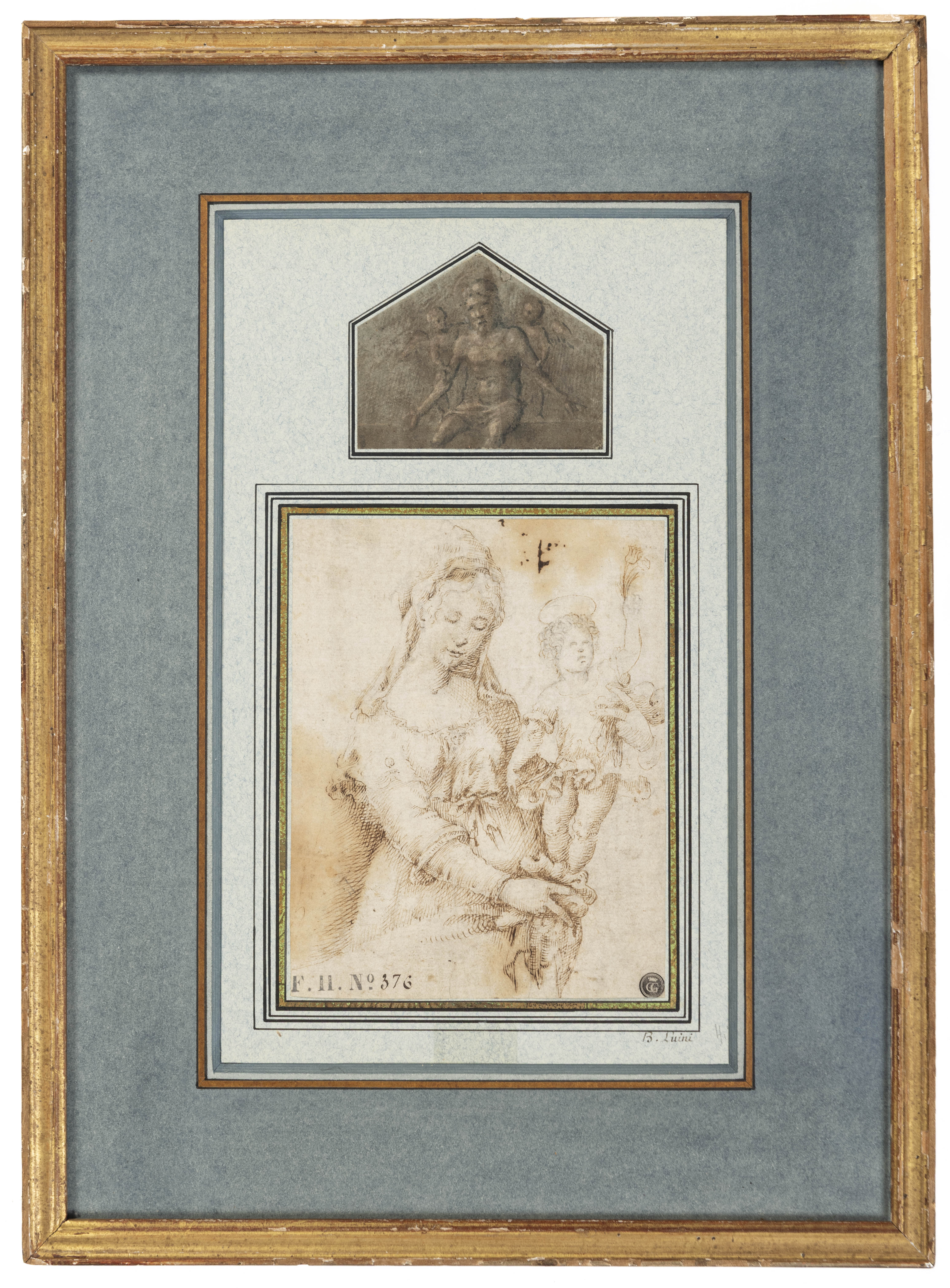 The Virgin and Child drawing was once part of a rich and varied collection of 16th and 17th century Italian drawings assembled in Turin by the 18th century connoisseur and nobleman Vittorio Luigi Modesto Bonaventura Genevosio (1719-1795), who also collected paintings and antiquities. (In 1783 Genevosio was described by the writer François Gaziel as ‘one of the greatest art lovers known to man, with a superb collection of excellent paintings and the most precious drawings by the most famous masters, a library filled with the finest books, a collection of precious stones and everything that natural history has to offer in terms of rarities.’) In March 1794, shortly before Genevosio’s death, he sold the 330 drawings in his collection to his fellow Turinese collector Marchese Giovanni Antonio Turinetti di Priero (1750-1801), for the sum of 11,500 lire. In 1803, two years after Turinetti’s death, the Genevosio collection was dispersed in a series of four auctions.