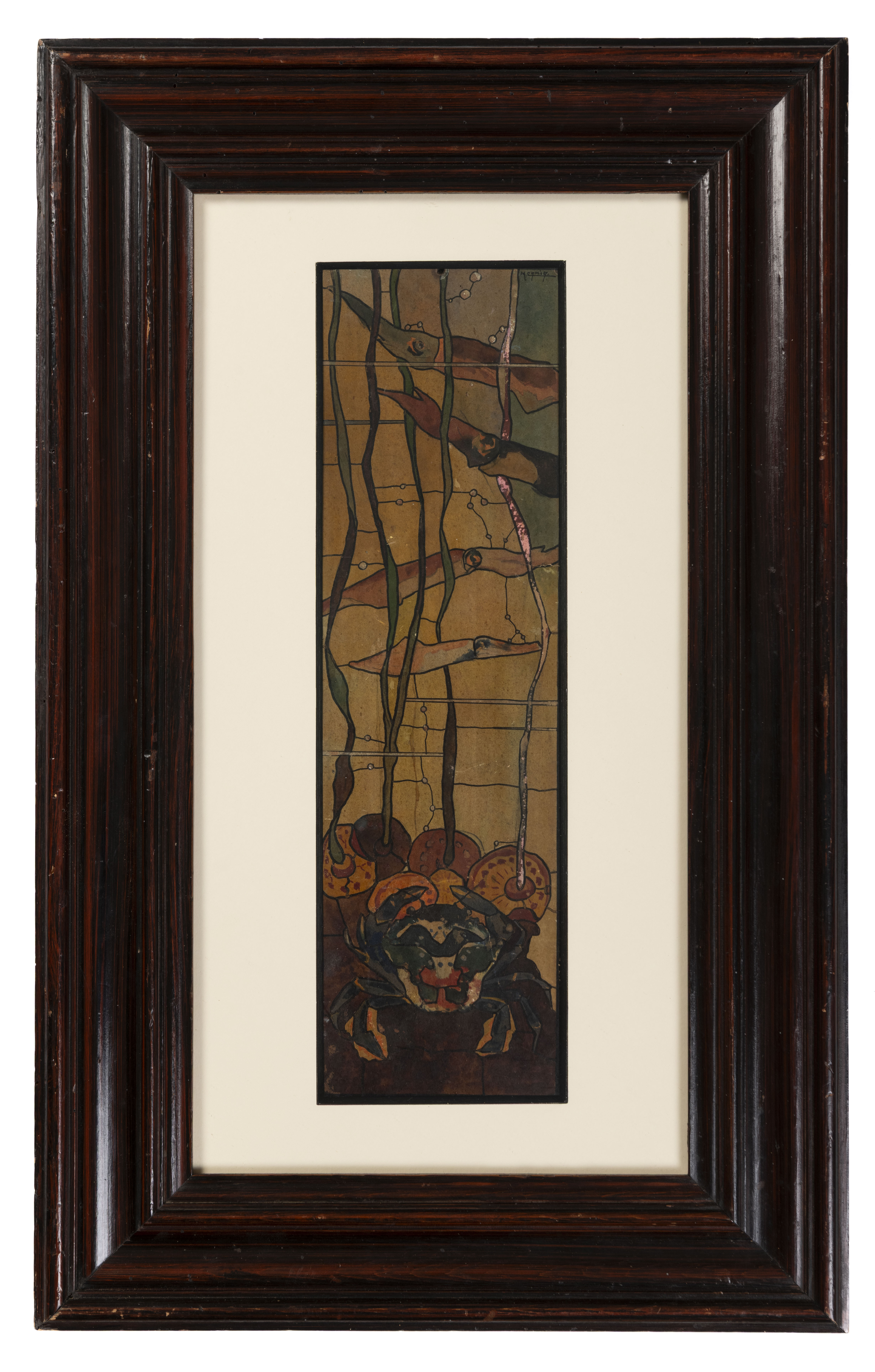 Inscribed Calmar (Loligo Vulgaris) / Crabe (portunus Armatus) / et / Algues (himanthalia lorea) in pencil on the reverse of the panel.