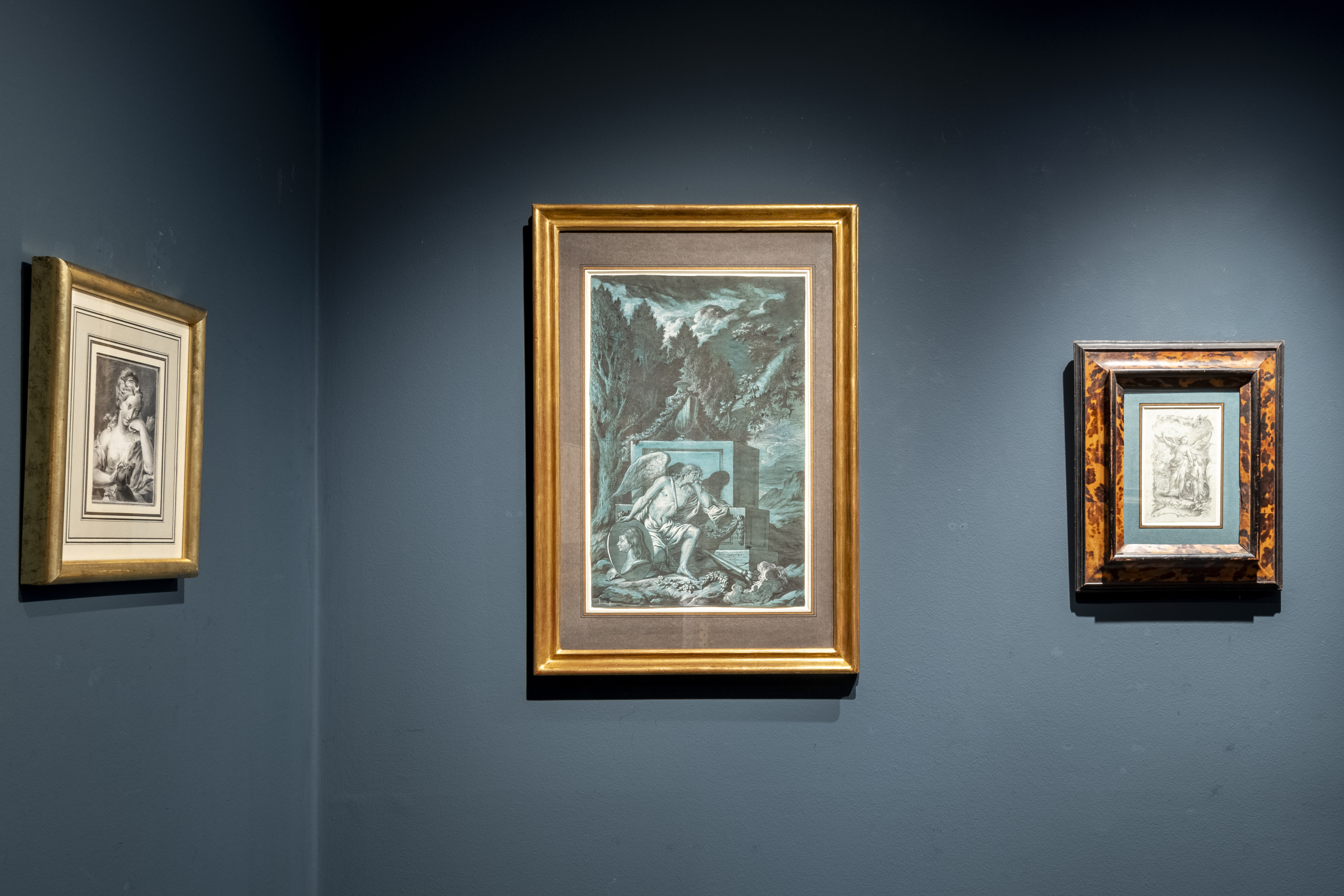 As Benjamin Peronnet has pointed out, Lagrenée ‘copied antiquity or rather reinterpreted it in his own way throughout his career...Lagrenée’s antiquity, like his mythological or historical scenes, is attractive and arranged in a picturesque and especially decorative way.’ The artist frequently experimented with different techniques in his work, and as a draughtsman was particularly fond of applying highlights in gold, often on prepared paper washed brown or a deep blue. As Victor Carlson has noted, ‘One of the most delightful aspects of Lagrenée’s art is his chiaroscuro drawings on blue paper, where the support is tinted with gouache or watercolour...creating a ground against which the figures are defined with black ink and white highlights. This combination of media is used to evoke a scintillating play of light over surfaces...The fact that highly finished chiaroscuro drawings...can be found throughout Europe at this time is one aspect of the growing preference for drawings as independent works of art.'